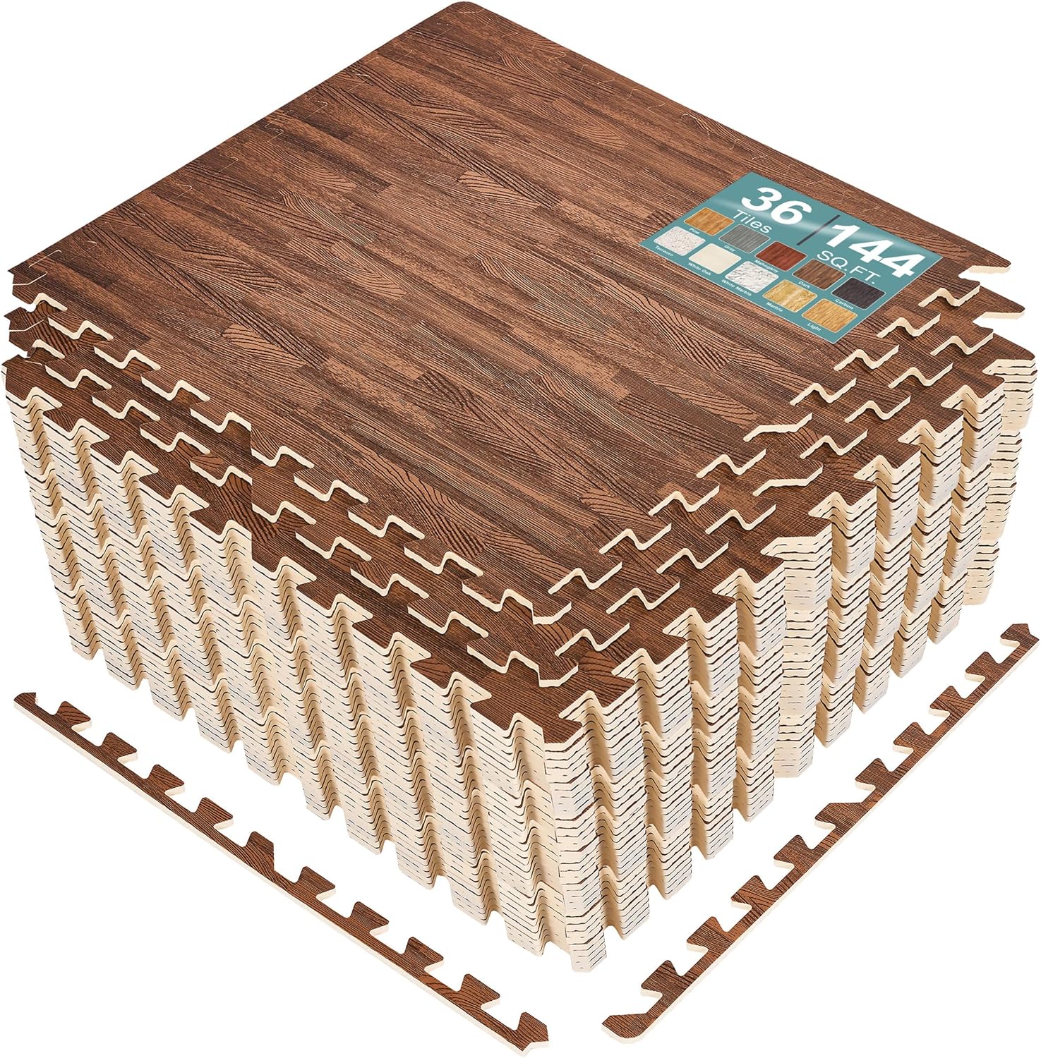Interlocking floor mats turn any cold, hard floor into a comfortable, stylish surface. No more rugs to clean or cold hard floors! Enhance the comfort and appearance of your floor with the Sorbus Interlocking Floor Mat. It features wood grain foam tile pieces to soften your space with the look of classic faux wood flooring. This mat not only protects from floor damage, but reduces strain on your feet while standing. It’s a great option for anyone seeking cushioned padding with the realistic look of hardwood floors. Whether you’re creating a home office or setting up a tradeshow booth, foam mat tiles are incredibly versatile and multi-purpose. Install in specific areas or wall-to-wall to maximize space in your home or business. Re-imagine a dull room converted into a comfortable living room, workspace, or fresh laundry room with decorative faux wood to complement any style. In the home, this foam tile mat can be used as interlocking exercise floor mats, for the basement, garage, or beneath tents and sleeping bags while camping. For Business, floor tiles make a great anti fatigue mat while standing during trade shows, conventions, office, health care facility, daycare, classroom, and more. For a more personalized space, mix and match with other wood grain tile colors by Sorbus or keep your floor one color for a streamlined look. The interlocking tile pieces are quick and easy to assemble with a secure, seamless look! Create an attractive new floor within minutes! Puzzle tiles can be used as single or multiple pieces while the border edges allow any tile to be a corner, border, or center. Film material is OPP 100% Plastic, Mat is 100%PE. Easy to clean. Each tile measures approximately 24"L x 24"W.