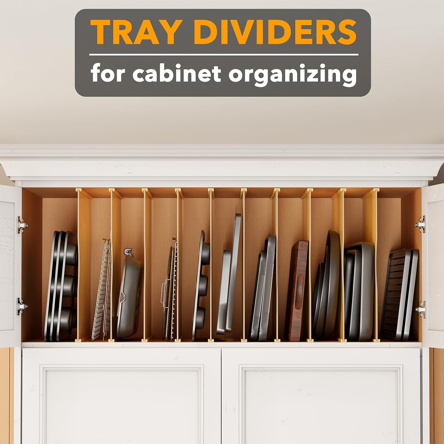 SpaceAid 6 Pack Tray Dividers for Cabinets, Bamboo Kitchen Cookie Baking Sheet Organizer for Cabinet, Vertical Pan and Trays Organizers for Pantry Storage