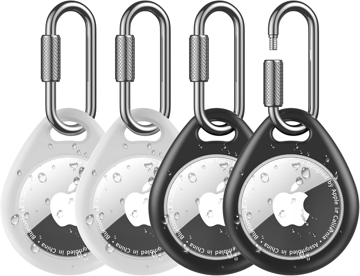 SPGUARD Apple Air Tag Holder (1st/2nd Generation)- 4 Pack Air Tagholder Keychain with Professional Carabiner, Waterproof & Shockproof TPU Air Tag Case 2/1 for Keys, Backpacks, Pets, Luggage, Kids