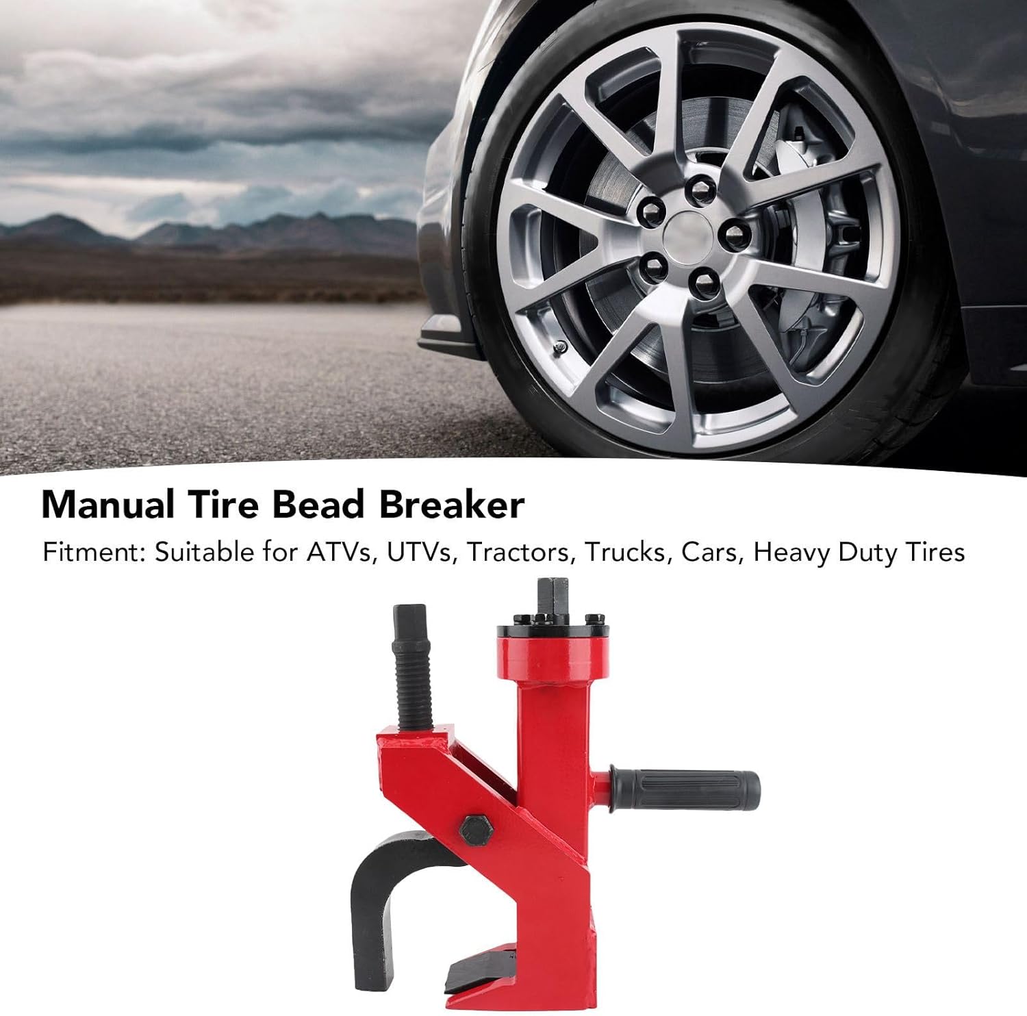 Spec: Item Type: Manual Tire Bead Breaker Material: Metal Fitment: Suitable for ATVs, UTVs, Tractors, Trucks, Cars, Heavy Duty Tires Package List: 1 x Tire Bead Breaker 1 x Sleeve