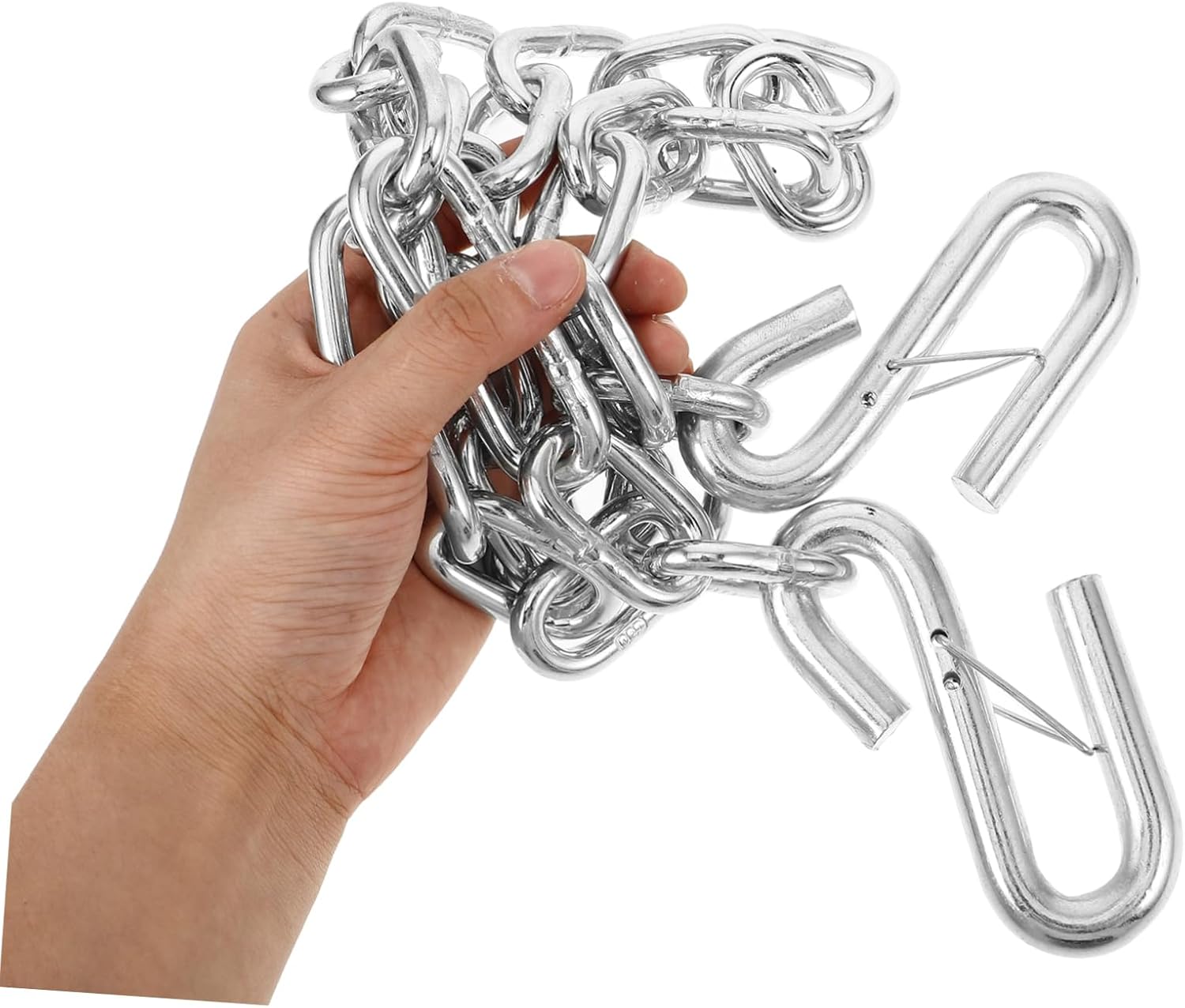List 1 x trailer chain with hooks Characteristics -Versatile tool: Trailer towing chain is suitable for a variety of towing applications, from trailers to rvs trailer accessories -Secure connection: The safety chain ensures a secure and dependable connection, preventing accidental detachment towing chains with hooks -Strong materials: Made from stainless steel materials, this trailer towing chain exceptional durability and long-lasting performance towing chains -Material:Stainless steel boat trailer accessories -Towing accessory: This safety chain with hooks is nice for heavy-duty trailer and rv projects trailer chains with hooks -With its user-friendly design: Installation is quick and straightforward, saving you valuable time and effort chain link -Size: 105.00X6.00X1.20cm/41.27X2.36X0.47in safety chain -Color:Silver trailer safety chain -Maximum load capacity 3500 lbs boat partsGoods Descriptionchain retainer Crafted from stainless steel materials, this chain is built to last, offering durability and long-term use.lift chain with hooks The safety chain with hook ensures secure and reliable towing, providing peace of mind on every journey.boat trailer safety chain Engineered for superior strength, our safety chain is ideal for RV modifications