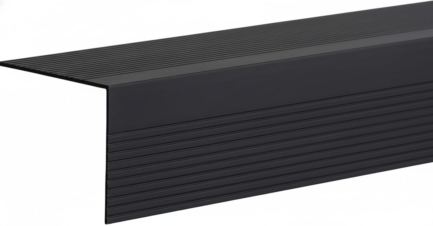 Introducing the TMH Aluminum Stair Edging the ultimate aluminum stair nosing designed for both residential and commercial applications. Engineered to perfection, this aluminum stair protector is built to withstand heavy traffic, and covers and protects the edge of a stair step. Stair Edging prevents wear and tear on carpeted or hard surface stair steps and prevents a stair ft.s vinyl surface from curling. Stair Edgings are easily secured to wood and concrete floors with provided Screw Nails. Available in 4 finishes. Balck, White, Silver and Satin.