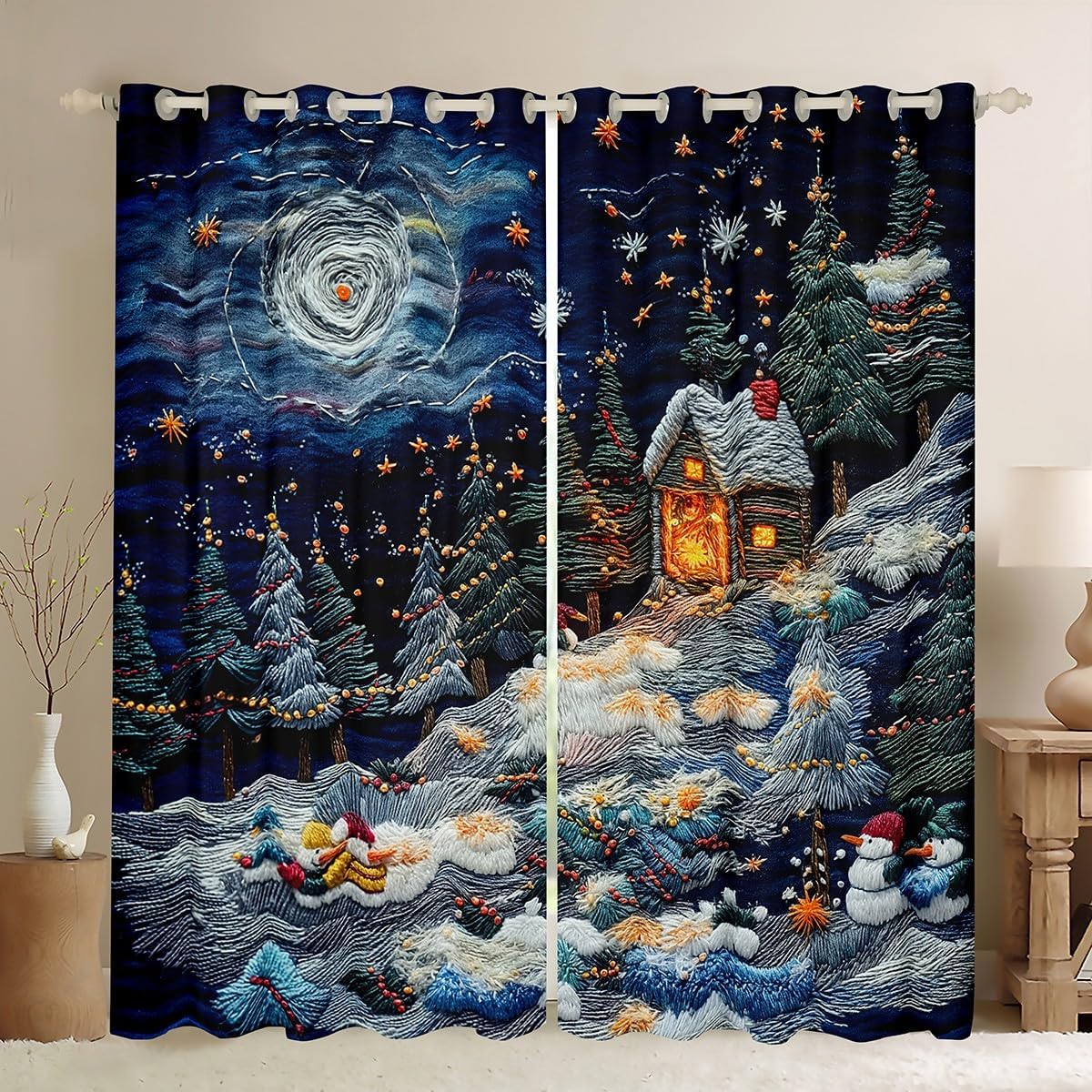 Package Include: 2 Window Treatment Sets Tiers Curtain Panels Drapes. Velvet fabric, soft and skin friendly, the Window Drapes natural resistance to shrinking and a noticeably soft hand feel. Size Information: 76W x 45L inch Window Curtain Panels,Suitable for the living room,bedroom,kitchen,guest room,kid’s room. 76W x 54L inch Window Curtain Panels,Suitable for the living room,bedroom,kitchen,guest room,kid’s room. 84W x 63L inch Window Curtain Panels,Suitable for the living room,bedroom,kitchen,guest room,kid’s room. 84W x 84L inch Window Curtain Panels,Suitable for the living room,bedroom,kitchen,guest room,kid’s room. 84W x 90L inch Window Curtain Panels,Suitable for the living room,bedroom,kitchen,guest room,kid’s room. 104W x 63L inch Window Curtain Panels,Suitable for the living room,bedroom,kitchen,guest room,kid’s room. 104W x 84L inch Window Curtain Panels,Suitable for the living room,bedroom,kitchen,guest room,kid’s room. 104W x 90L inch Window Curtain Panels,Suitable for the living room,bedroom,kitchen,guest room,kid’s room. 104W x 96L inch Window Curtain Panels,r,Suitable for the living room,bedroom,kitchen,guest room,kid’s room. Occasion: The cute Home furniture decoration Trendy designed for Children ,Adult, Men, Women, Teens. This Window Treatment Sets is also suitable for full seasons, Spring, Summer, Autumn and Winter. More Decor: Search our store to get more christmas theme, new year theme, autumn fall theme, any holiday theme, modern abstract, farmhouse rustic theme, simple pattern, garden flowers etc. home decoration. Warm Tips: 1. Please allow 1-3cm error due to manual measurement. 2. Actual color may vary from the color on your screen due to monitor color restrictions.