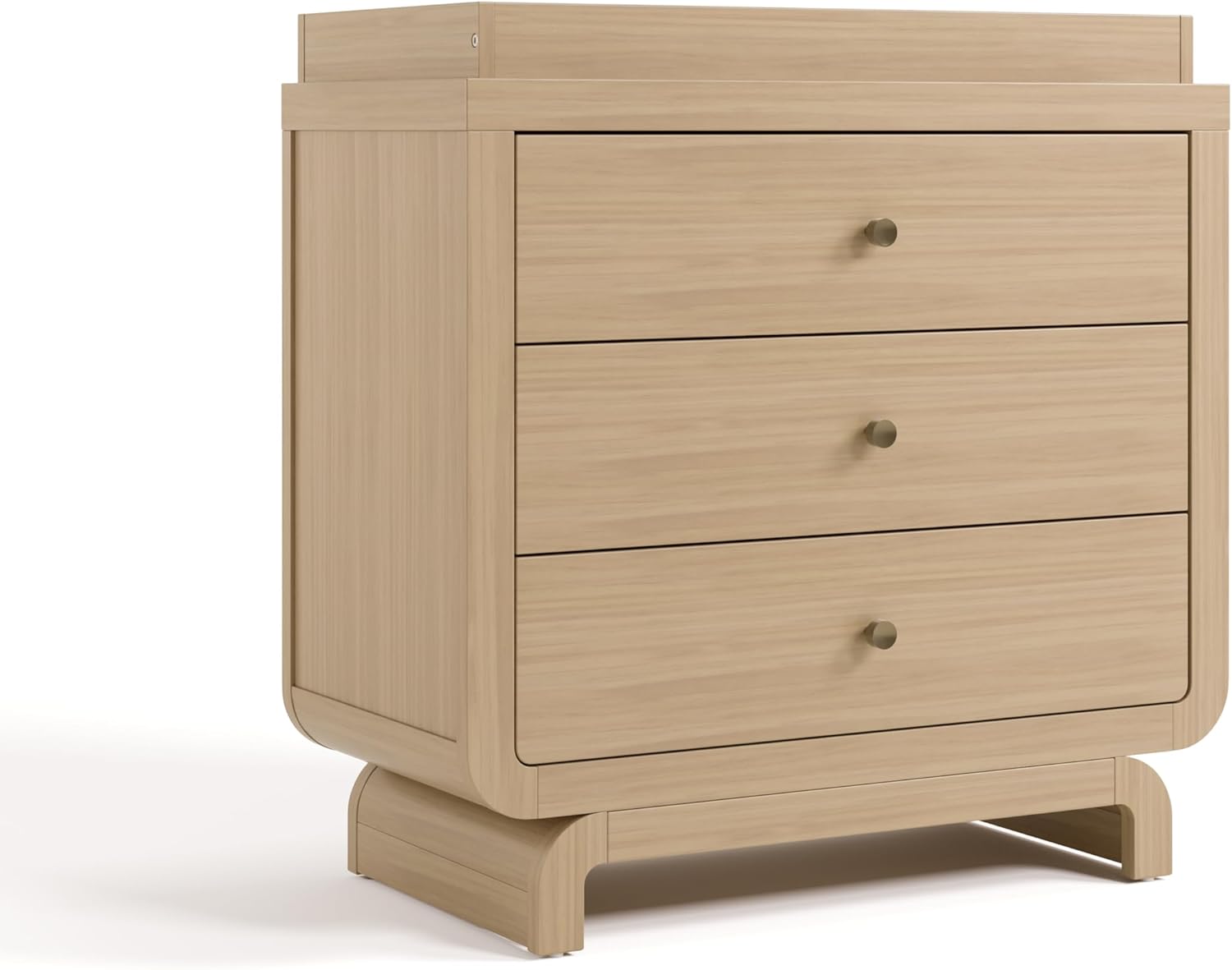 Introducing the Storkcraft Santorini 6 Drawer Dresser – our most iconic dresser yet. It's a captivating blend of modern elegance and timeless allure, destined to be the perfect centerpiece for any nursery or kid's bedroom. Organize your space in style with our GREENGUARD Gold Certified Santorini 6 Drawer Dresser. Named after one of the world's most beautiful places, the Santorini 6 Drawer Dresser offers a harmonious blend of exquisite craftsmanship, timeless elegance, and gracefully rounded contours. This piece is meticulously crafted from pine wood and rigorously tested to meet or exceed ASTM and CPSIA safety standards, including the ASTM F2057 safety specification for clothing storage units. Enhancing its charm, the dresser features elegant soft bronze color knobs for a stylish touch. Although designed to perfectly complement the Storkcraft Santorini Collection, its versatile and sophisticated design ensures it seamlessly integrates into any nursery or child’s bedroom. Equipped with our cutting-edge interlocking drawer system and a furniture tip-over restraint kit, the Santorini 6 Drawer Dresser is designed with safety in mind, allowing only one drawer to be open at a time to minimize the risk of furniture tip-overs. Choose the Santorini 6 Drawer Dresser for a combination of safety and style in your family’s space. Storkcraft is the proud recipient of the Parent Tested Parent Approved (PTPA) Seal of Approval for nursery and children’s bedroom furniture, 2023 PTPA Top Product Award, and the 2023 Women's Choice Award for 9 out of 10 Recommended Baby & Kids Furniture. Backed by a 1-year limited manufacturer’s warranty. Assembly required. Mattress sold separately.