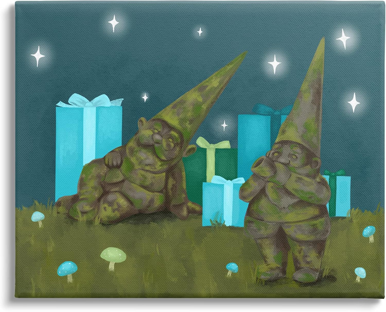 Stupell Industries Festive Mossy Garden Gnomes Grassland Christmas Gifts, Design by Lil' Rue