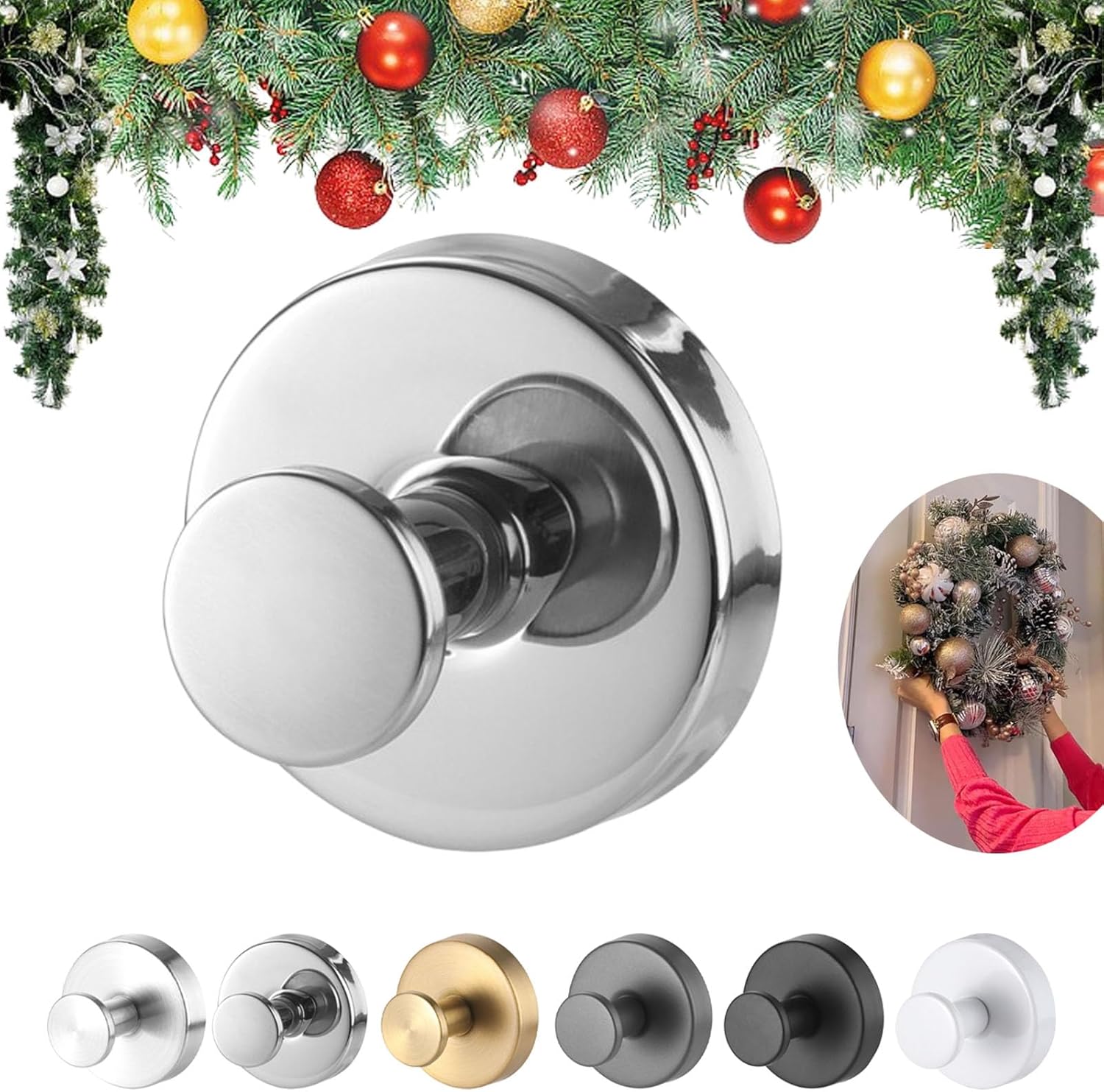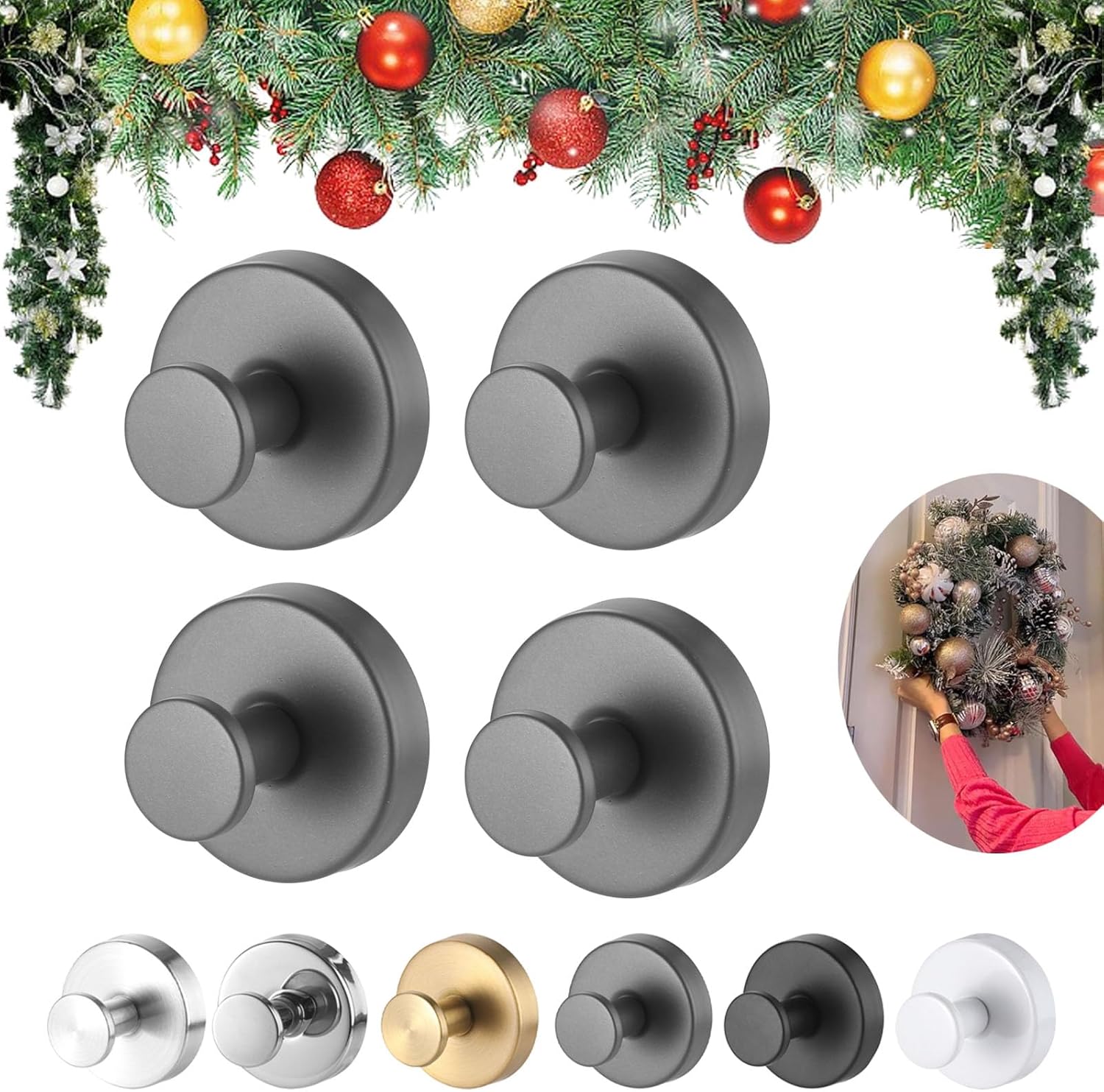 ---------------------------------★Welcome to Our Shop★----------------------------------- We provide you with a variety of trustworthy and high-quality products, hope you can buy the products you like! If you have any questions, please contact us, we will reply you within 24 hours! I wish you a happy shopping! Features: 1.Multi-functional Design 2.High Quality Materials 3.Space-saving Design 4.Wide Range of Applications 5.Easy to Use Specifications: Name:Suction Cup Hooks for Wreaths on Glass Material: Stainless Steel Size: 2.4 x 2.4 x 2 inches Color: Black, Grey , Gold, Brushed Silver, Bright silver, White Package Includes: 1/2/4/6 Pcs * Suction Cup Hooks for Wreaths on Glass Note: 1.Due to manual measurement, please allow a difference of 1-5g/1-2cm. 2.Due to different displays and different lighting, the picture may not reflect the actual color of the item. Thank you for your understanding.