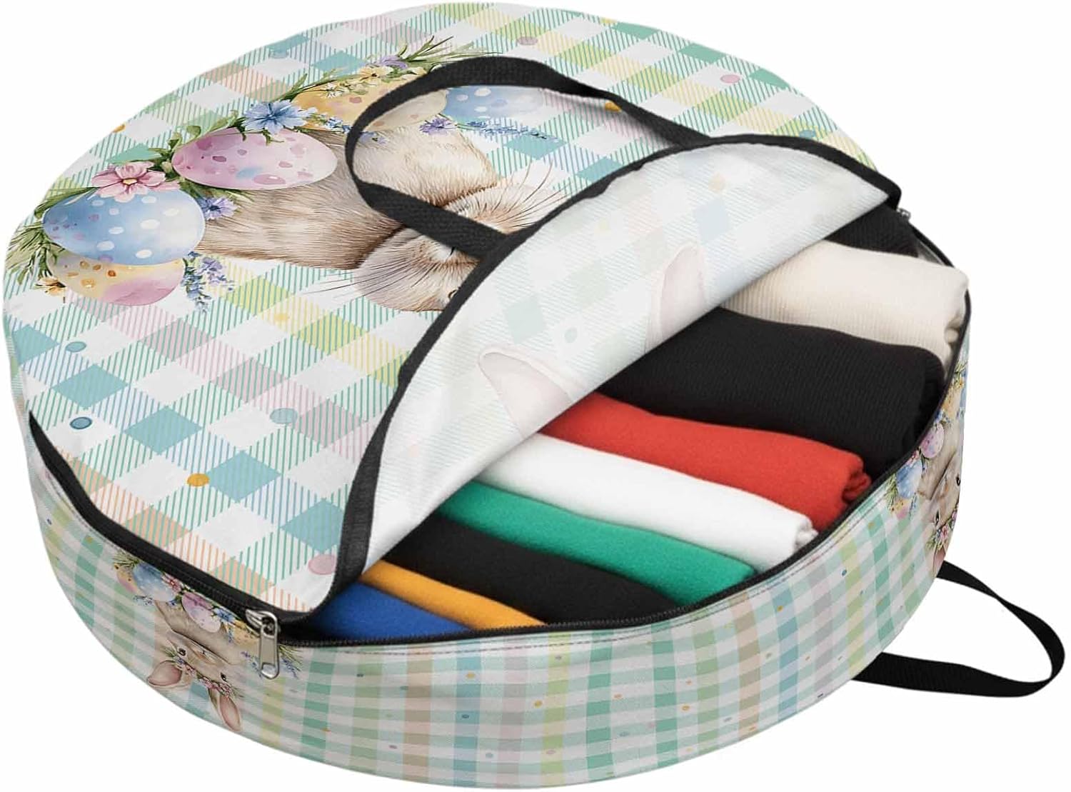 Reclaim Your Closet Space with the Round Storage Solution! Material: polyester Diameters: 24 inch, 30 inch, 36 inch Depth: 7 inches Package Includes: Round Storage Bag One Bag, Endless Possibilities: Whether you are swapping out your summer wardrobe, moving into a new dorm, or packing away holiday decorations, this bag has you covered. The circular design is uniquely suited for: Bedding: Comforters, quilts, sheet sets, and oversized pillows. Clothing: Winter coats, sweaters, and bulky ski gear. Home Decor: Holiday wreaths, garlands, and floral arrangements. Outdoor Gear: Camping blankets, sleeping bags, and beach towels. Dual Zippers: The high quality double zipper design allows the closet organizer to open wide from both sides, making it effortless to load and unload even the bulkiest comforters or wreaths. Reinforced Handles: Sturdy, reinforced handles are securely stitched to provide extra strength and a comfortable grip when carrying heavy loads or pulling the bag from under a bed. Clear Label Pocket: A transparent built-in label holder allows you to quickly identify the contents of each bag without ever having to unzip it, keeping your storage perfectly organized.