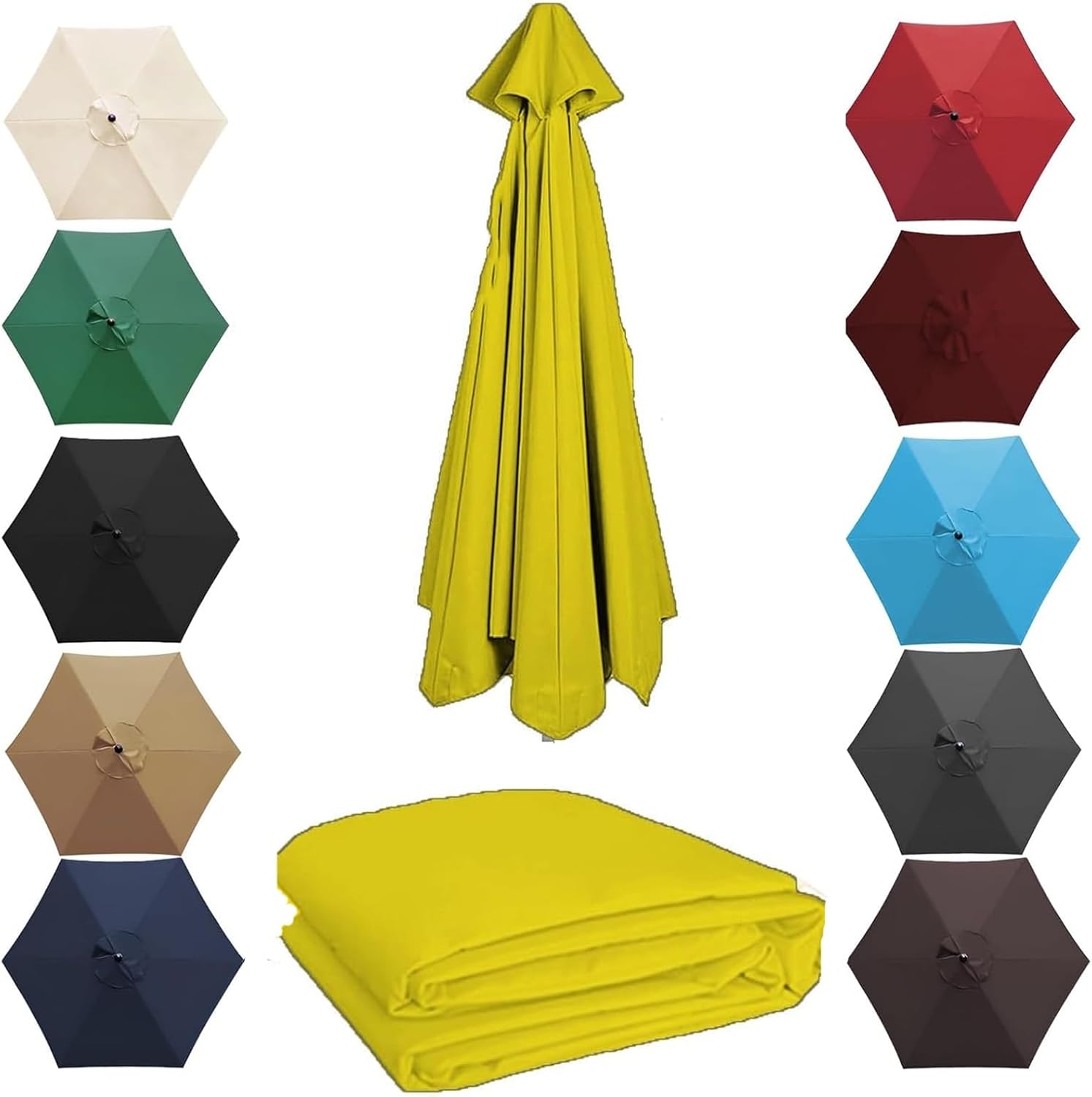 Sun Umbrella Replacement Cloth for your yard, garden, terrace, swimming pool, terrace, and more. Replace the old umbrella canopy to give your parasol a brand new look.How To Measure Your Parasol?6.6 FT / 2.0 M Fit 6 Ribs/8Ribs Length: 38 IN - 40 IN / 97 CM - 99 CM9 FT / 2.70 M Fit 6 Ribs/8Ribs Length: 52 IN - 54 IN / 132 CM - 135 CM10 FT / 3.0 M Fit 6 Ribs/8Ribs Length: 56 IN - 58 IN / 145 CM - 148 CM11.5 FT / 3.50 M Fit 8 Ribs Length: 67 IN - 69 IN / 172 CM - 175 CM