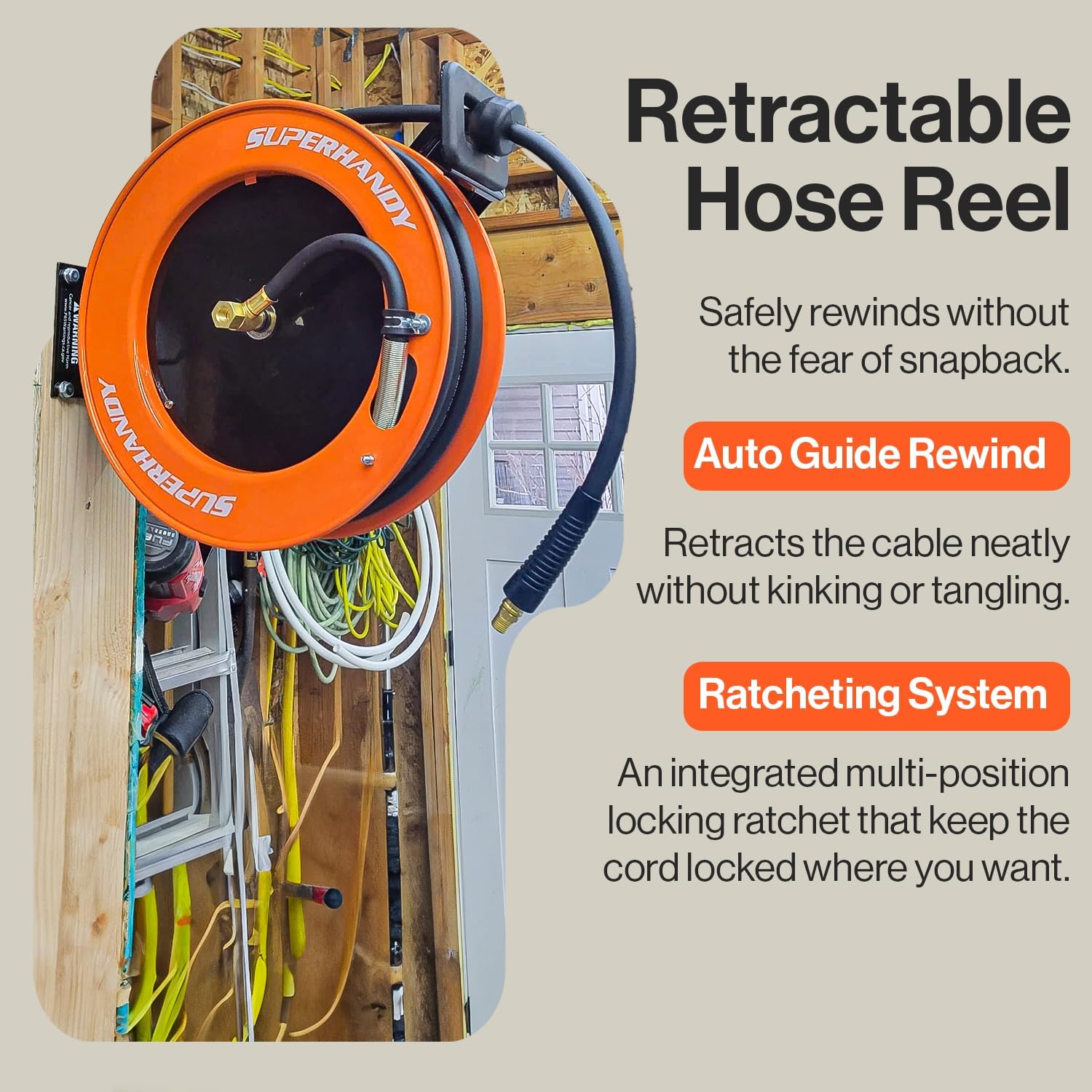 SuperHandy GoRise LT Portable Floor & Bath Lift - Lightest Weight 19lbs, Foldable, 330 Lbs Capacity, IP68 Waterproof Bath tub Lifts for Seniors, Ergonomic Seat with Removable Panels SuperHandy Air Hose Reel Retractable Industrial 3/8" Inch x 50' Feet Long Premium Commercial Flex Hybrid Polymer Hose Spring Driven Steel Construction Ultra Heavy Duty