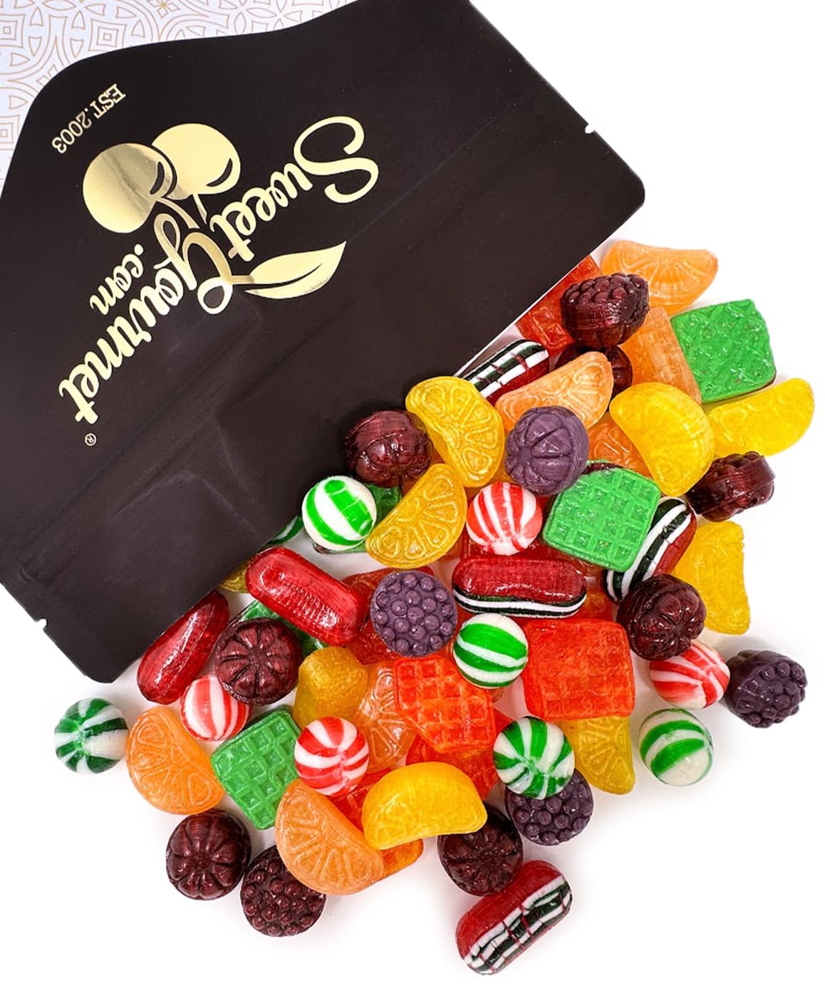 Indulge in the nostalgic charm of this Old-Fashioned Christmas Mix Candy, a delightful assortment of colorful hard candies that brings holiday cheer to any setting. This festive mix features an array of shapes including citrus slices, berries, and traditional holiday designs in vibrant colors like purple, yellow, red, orange, and green. Each piece is carefully crafted with a glossy finish that makes them as beautiful as they are delicious. Perfect for filling candy dishes, decorating gingerbread houses, or creating memorable holiday displays. The candies maintain their quality at room temperature and come packaged for freshness with a shelf life of up to 365 days. Made in the USA, these kosher-certified treats are ideal for offices, holiday parties, or as seasonal decorative elements. The mix offers various classic flavors that everyone loves, making it a versatile choice for holiday entertaining or gifting.