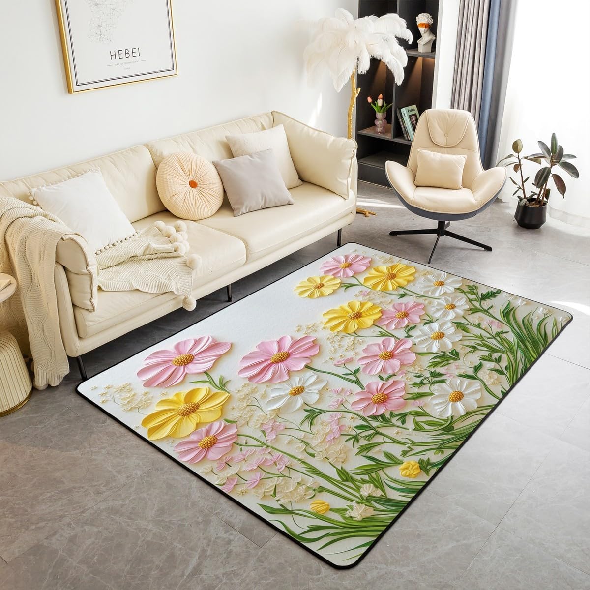 Tips: The carpet will arrive with temporary creases, you can repeat the process several times by rolling the carpet in the opposite direction of the creases and then spreading the carpet flat and pressing the edges of the roll with a heavy object to restore the carpet to its original state. We recommend using an iron to iron carpets at low temperatures more quickly. Size: 2 sizes can be chosen of our rugs dimension: 3' x 5' x 0.39'' 100cm x 150cm x 1cm. 5' x 6'6'' x 0.39'' 150cm x 200cm x 1cm. Material: Made with 100% polypropylene. No chemicals used, No dye substance harming the health of you or your family. The rubber non slip design on the bottom of the area rug for bedroom is the safest protection. One piece is enough,you don't need to buy additional non slip carpet pads. Machine washable: Soak in cold water for 10 minutes,then folded twice and put into the washing machine on gentle cycle, and then dry in the air.Do not use chlorine or bleach. Features: With many different patterns to choose from, you will easily find rugs to coordinate with your decor. Our rug is widely used as the floor rug as well as a play mat, kitchen rug, bedroom rug, laundry mat, living room mat, office rug etc. Notes: Due to the light and screen setting difference, the item's color may be slightly different from the pictures. Please allow slight dimension difference due to different manual measurement.