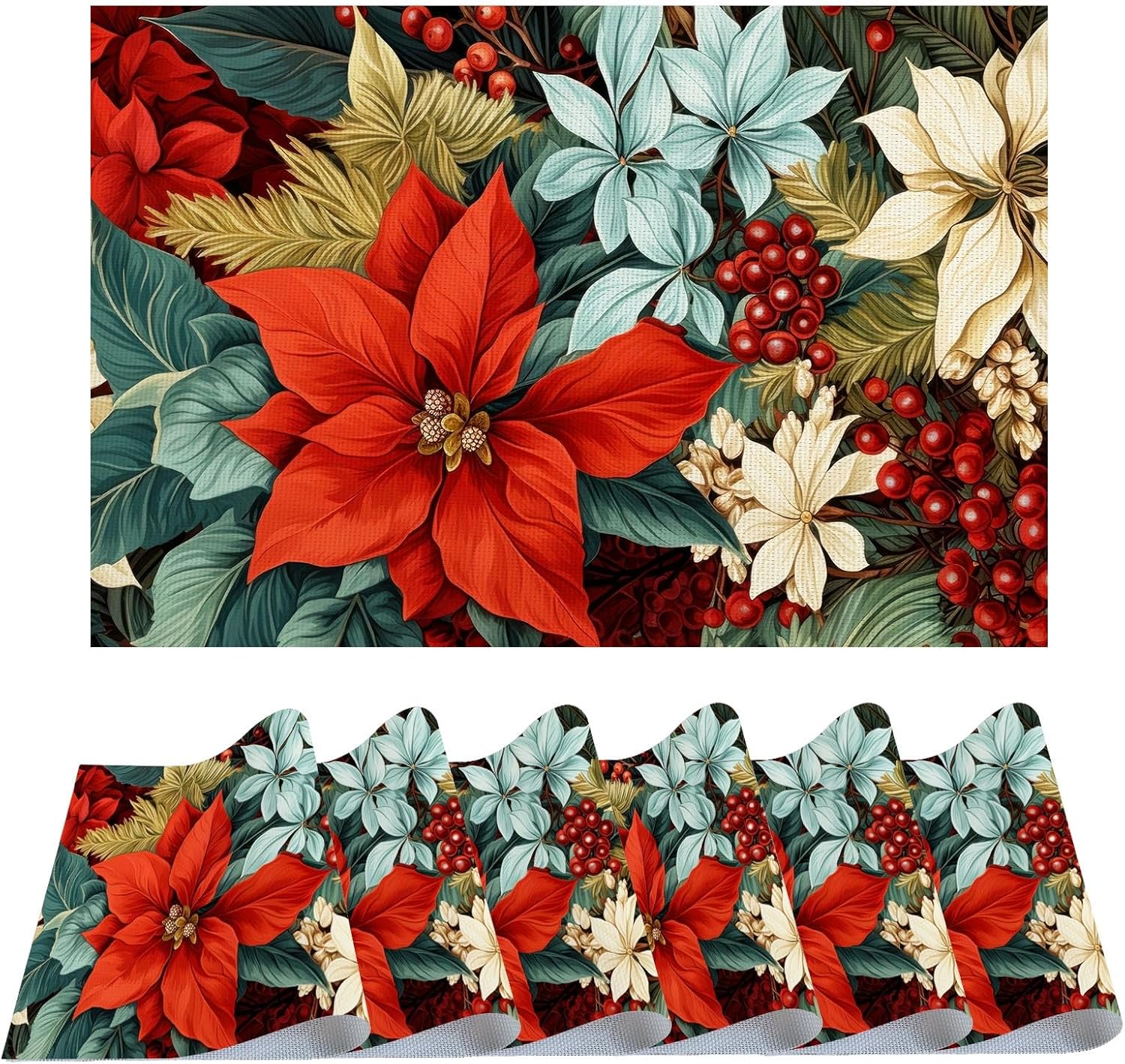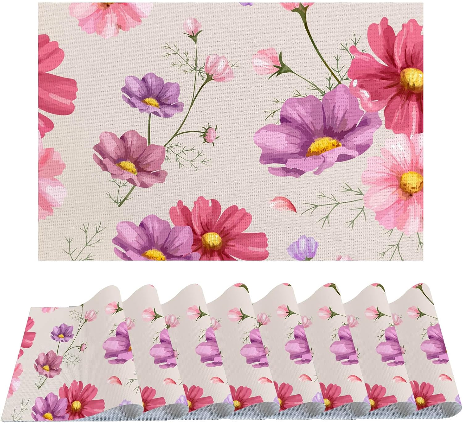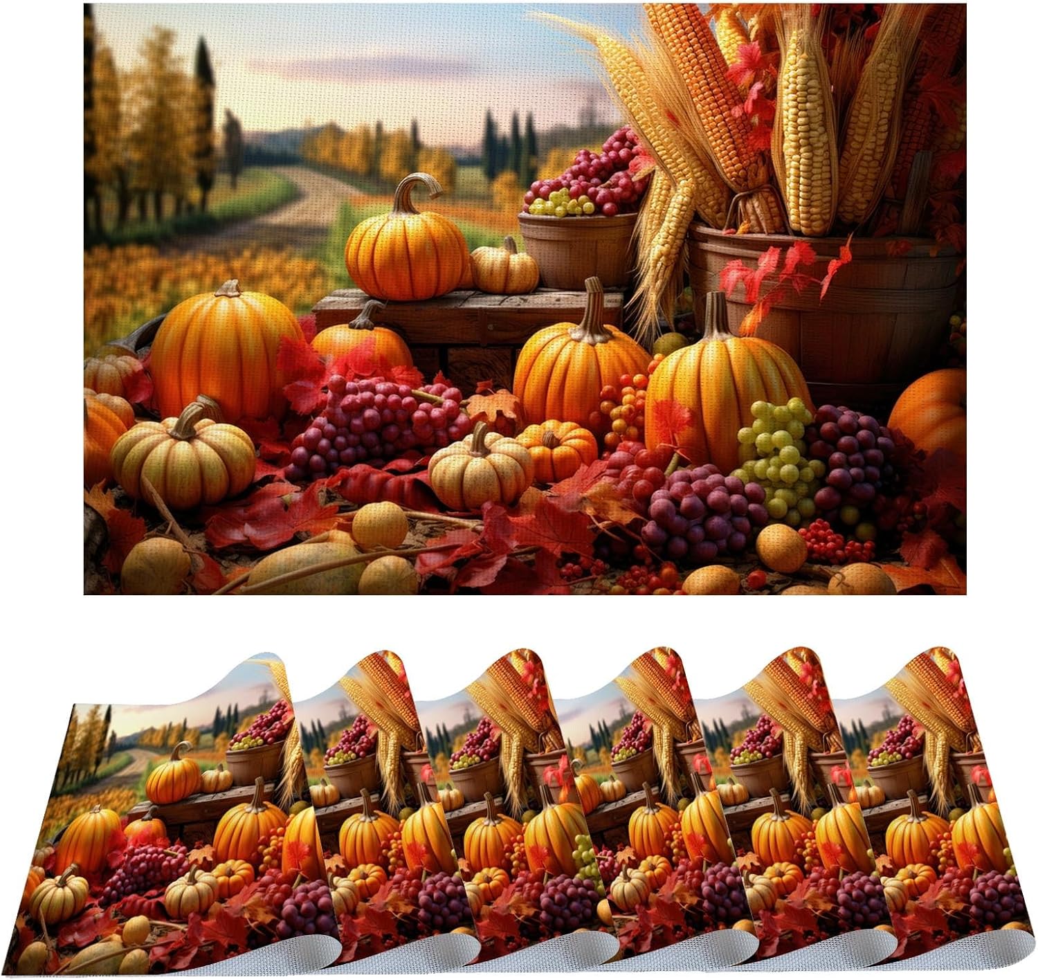 These vibrant,unique and cute placemats are the ideal complement to your life, kitchen, and dinnerware,no matter what's the season, occasion or the color of the table,and create a delightful dining atmosphere. Size:11.7"x 17.5" (297mmx445mm). Package: 6 pieces place mats. Application:More Than Just Placemats,featuring a luxurious vinyl woven texture with precise cutting and smooth edges.Not only for dining table, our placemats are also suitable for outdoor picnics, parties,barbecues, kitchen catering daily use, or themed party decorations, holiday and special event celebrations. They can be used as table mats, coasters, or even as home decor. Feature: 1.Durable and Washable:Washable–PVC material does not absorb water, so it is easy to rinse with water and dry quickly. 2.Heat resistant mat: They are widely applicable place mats that have improved heat insulation thus excellent for holding hot plates and mugs.keeping your dinner mats nice looking. 3.Available in Different Beautiful Prints:Our placemats printed with stylish, unique and cute patterns. Like fall leaf placemats,red placemats,snowflake placemats,black placemats,green placemats,winter placemats,wood pattern placemats,sunflower placemats,coffee placemats,floral flower placemats,pumpkin placemats,buffalo plaid placemats,christmas placemats,marble pattern placemats,maple leaves placemats,strawberry placemats,orange placemats,sun placemats,cute cat placemats,etc. 4.These place mats are durable units made using quality PVC woven vinyl and the weave pattern creates a non-slip contact with your tabletop. The rougher backing gives them a good non-slip grip.elevating your dining experience. 5. GIFTS:Eye-catching colors and vibrant patterns make these placemats perfect gifts for your friends, family members, neighbors, colleagues or boyfriend girlfriend, etc.