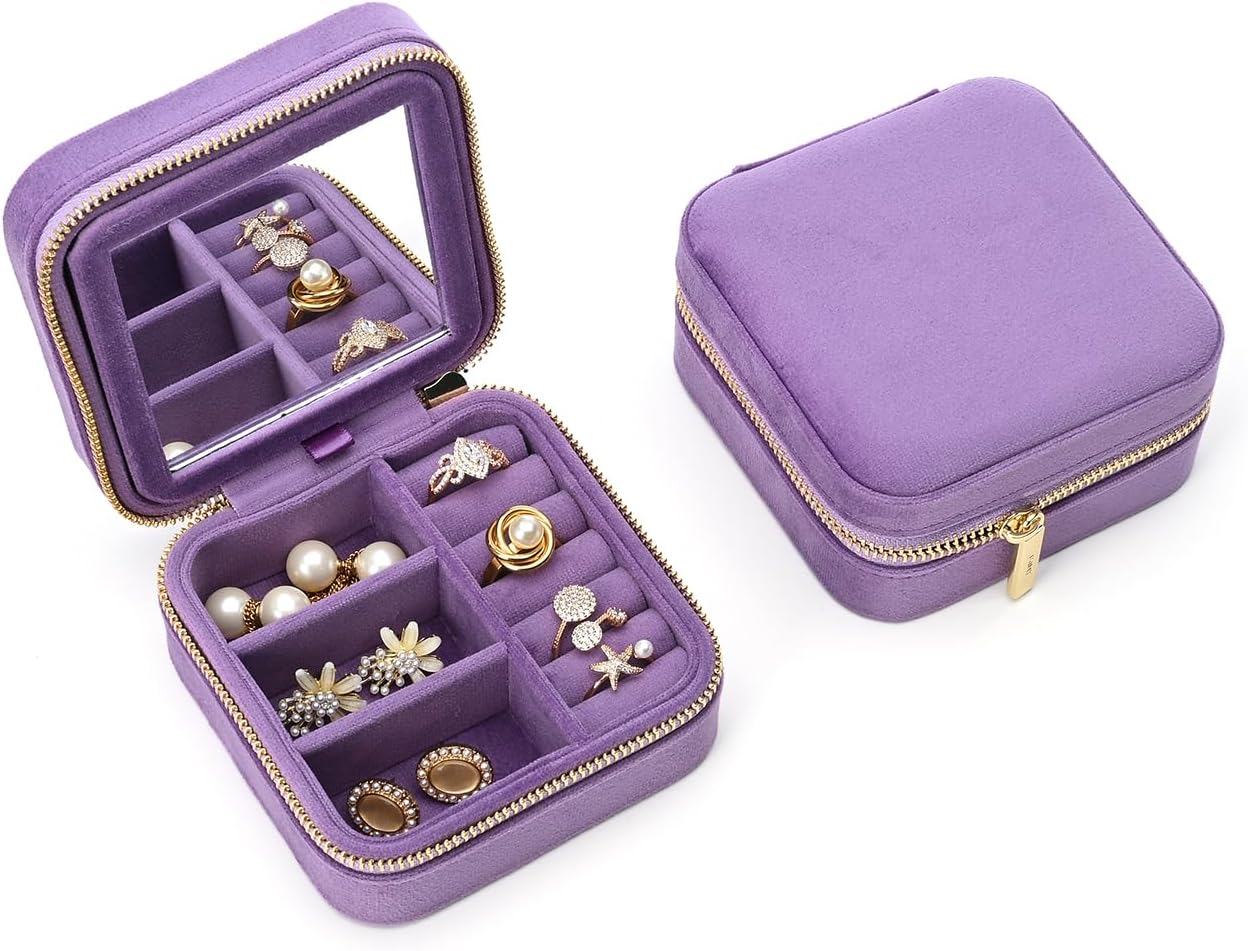 Keep your jewelry organized, protected, and beautifully displayed with this elegant velvet travel jewelry box. Designed with a built-in mirror, soft velvet lining, and multiple compartments, it safely stores rings, earrings, necklaces, cufflinks, and small accessories without scratching or tangling. With its compact 4 × 4 × 2.2 inch profile, this jewelry case slips easily into a handbag or luggage, making it a perfect companion for vacations, business trips, and everyday carry. The minimalist unisex design suits both women and men, offering stylish protection for your jewelry at home or on the go. Whether you’re gifting someone special or organizing your own essentials, this velvet jewelry box brings together practicality, protection, and timeless style—making every piece of jewelry feel even more precious.