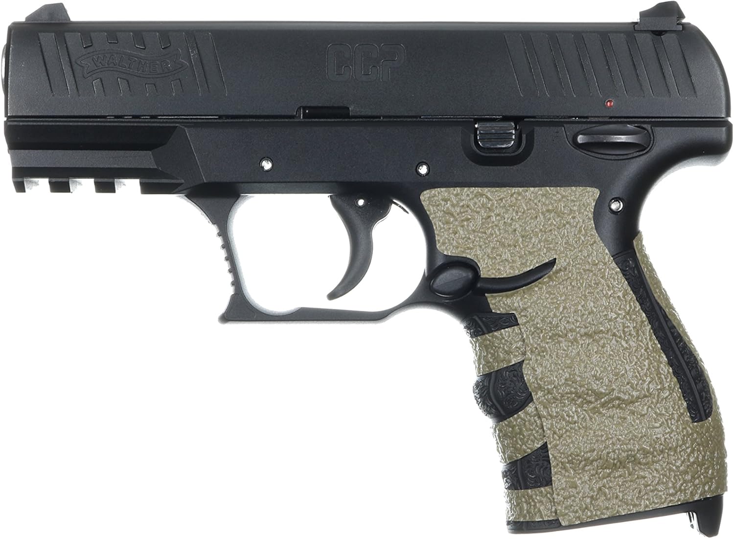 TALON Grips for Walther Arms CCP model. This rear wrap grip is available in both granulate and rubber textures and offers full side panel coverage including the thumb rest area, three finger wraps trigger guard, and ample coverage on the backstrap.