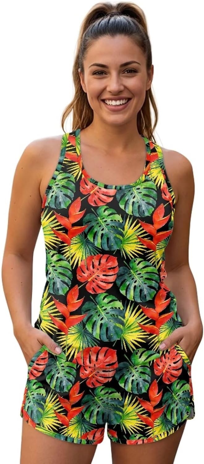 Yaosyuorus Women's Summer Tankini Swimsuits,Tummy Control Two Piece Bathing Suits with Pockets,Tank Top and Boyshort Swimwear High Waisted Sporty Swim Shorts for Women Size S-6XL [Product Information]: Material: Polyester + Spandex Size Detail: S: Length: 55.87cm/22in, Bust: 87.62cm/34.5in, Waist: 71.11cm/28in, Hip: 96cm/37.8in M: Length: 57.65cm/22.7in, Bust: 92.2cm/36.3in, Waist: 75.43cm/29.7in, Hip: 98.29cm/38.7in L: Length: 59.18cm/23.3in, Bust: 96.51cm/38in, Waist: 80cm/31.5in, Hip: 102.86cm/40.5in XL: Length: 60.7cm/23.9in, Bust: 101.6cm/40in, Waist: 83.8cm/33in, Hip: 106.6cm/42in 2XL: Length: 62.22cm/24.5in, Bust: 105.7cm/41.6in, Waist: 88.9cm/35in, Hip: 111.75cm/44in 3XL: Length: 64cm/25.2in, Bust: 114.3cm/45in, Waist: 100cm/39.4in, Hip: 118.6cm/46.7in 4XL: Length: 65.53cm/25.8in, Bust: 118.1cm/46.5in, Waist: 106.17cm/41.8in, Hip: 123.7cm/48.7in 5XL: Length: 67.05cm/26.4in, Bust: 118.1cm/46.5in, Waist: 112.3cm/44.2in, Hip: 128.8cm/50.7in 6XL: Length: 68.57cm/27in, Bust: 127cm/50in, Waist: 118.6cm/46.7in, Hip: 132.8cm/52.3in [Boyshorts with Two Pockets]: Our swimsuit bottoms feature pockets on both sides, perfect for storing keys, phones, sunglasses, and other personal items, freeing up your hands. The loose, soft cuffs allow for freedom of movement and prevent tightness from chafing against the skin. The curved leg design further expands the range of motion, ensuring comfort even during vigorous activity [Thoughtful design]:The swimwear set features bound edges on the neckline, cuffs, and leg openings to prevent fraying and ensure long-term durability, while also reducing friction against the skin and guaranteeing comfort. The swimsuit top features a sporty vest design at the back, providing stable support and ensuring freedom of movement. Our design prioritizes the customer experience, providing you with an exceptional experience