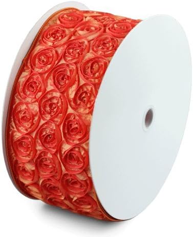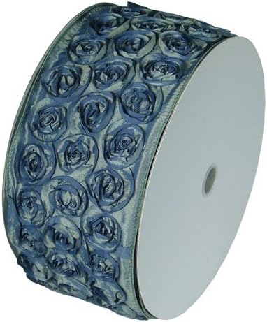 Ten Yards of 4 inches WHITE Wired edge rosette ribbon for weddings, décor, baby shower. Satin Rosette Tafetta ribbons measures 4 inches wide. They are embroidered rose ribbons made with outstanding stitched rose blossoms. Individual ribbon roses measures approximate 1 inches.