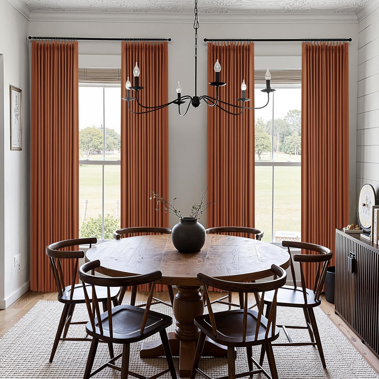 Terracotta Pinch Pleated Linen Blackout Curtains 90 Inches Long for Bedroom Living Room 2 Panels Set, Darkening Thermal Insulated Dual Layer Boho Neutral Pinch Pleat Hooks Rings Track System Curtain