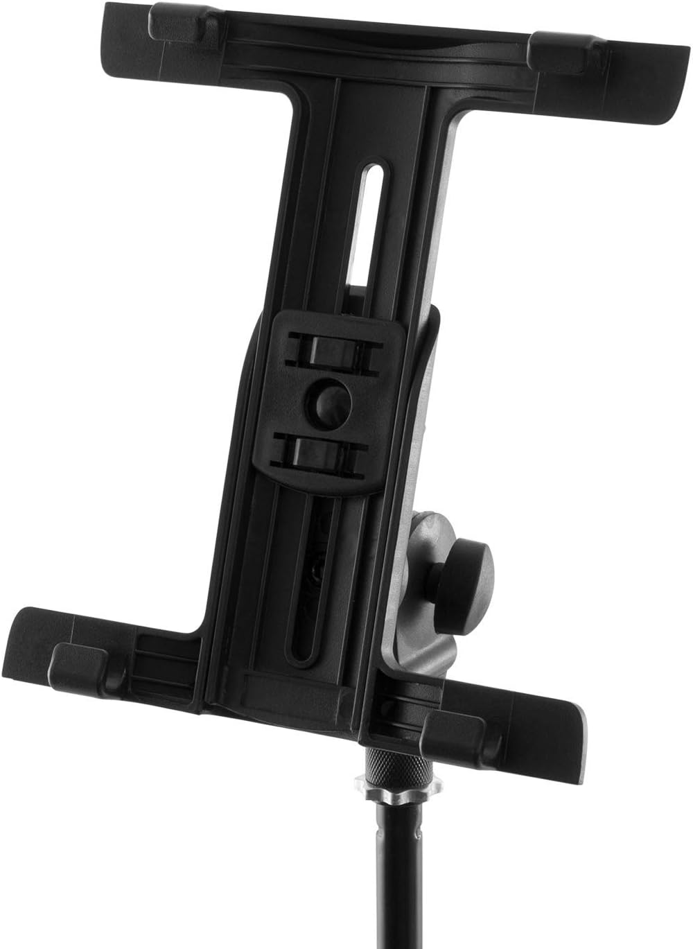 Whether you're performing or practicing at home, the Tiger Universal Tablet Holder is a great way to read your digital sheet music and other media wherever you are. Unlike those designed with c-clamps, this Universal Tablet Holder by Tiger simply screws onto the top of your music stand for easier adjustment, offering an impeccable level of stability. A fully adjustable height mechanism and secure grips allow this particular holder to accommodate devices with screen sizes of 7"-10.1", meaning that almost any tablet is compatible; just twist the curved knob to release the sliding grips, place your tablet inside and tighten the knob back up. To further cater to your preference, this tablet holder boasts the ability to be tilted at 180 degrees. Lightweight and easy to store, this essential accessory is particularly ideal for the gigging musician. To allow use with any microphone stand, a Tiger MCA83 3/8" to 5/8" Thread Adaptor is included. Item Specifications: - Minimum Width of Tablet: 7" (178.8mm) - Maximum Width of Tablet: 10" (256mm) - Maximum Depth of Tablet: 10mm - Weight: 0.216kg - Thread Adaptor Included
