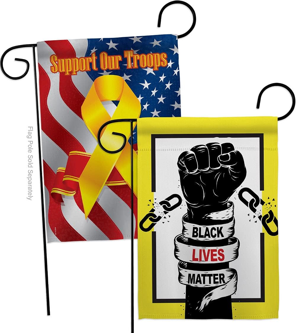 Support Beautiful Matching Large House Mini Garden Flags, Wooden Flagpole, Bracket & Metal Yard Banner Stand – Complete SetUSA Decoration have variety of Flags Kit for all occasions. Uniquely design for hanging indoor or outdoor use. We are committed to offering you exceptional values. Our customers enjoy displaying our Flags Kit for longer periods. Specification: Theme: SupportSize: House 28" X 40" Size: Garden 13" X 18.5"Print: Double-SidedReadable: Readable Both SidesMaterial: Weather Resistant 3 Layers BlockoutStitching: Double StitchedDisplay: VerticalHang Type: SleeveArtist: © Jane WelchSpecial Features:Origin: Made In USAPackage Include:1 pc x Large House Flag 28" x 40"1 pc x Mini Garden Flag 13" x 18.5"1 pc x 57" 2 Pieces Wood Pole Solid Brass Screw Joint1 pc x Adjustable Angle Wall Mount Flag Bracket1 pc x 40" 4 Pieces Breaks Down Metal Yard Banner Stand Package Decorative FlagsFor more than a decade, we’ve been dedicated to manufacturing flags with no comparison in quality and beautiful designs. Our flags are made with our Pro Guard material that is soft to the touch and designs can be read correctly on the flag. A feature that our customers will love. We are committed to using eco-friendly inks that won’t leave a foot print in our environment. MPN: UD-ST-FK-170050-IP-BO-D-US20-UD 70050 70050