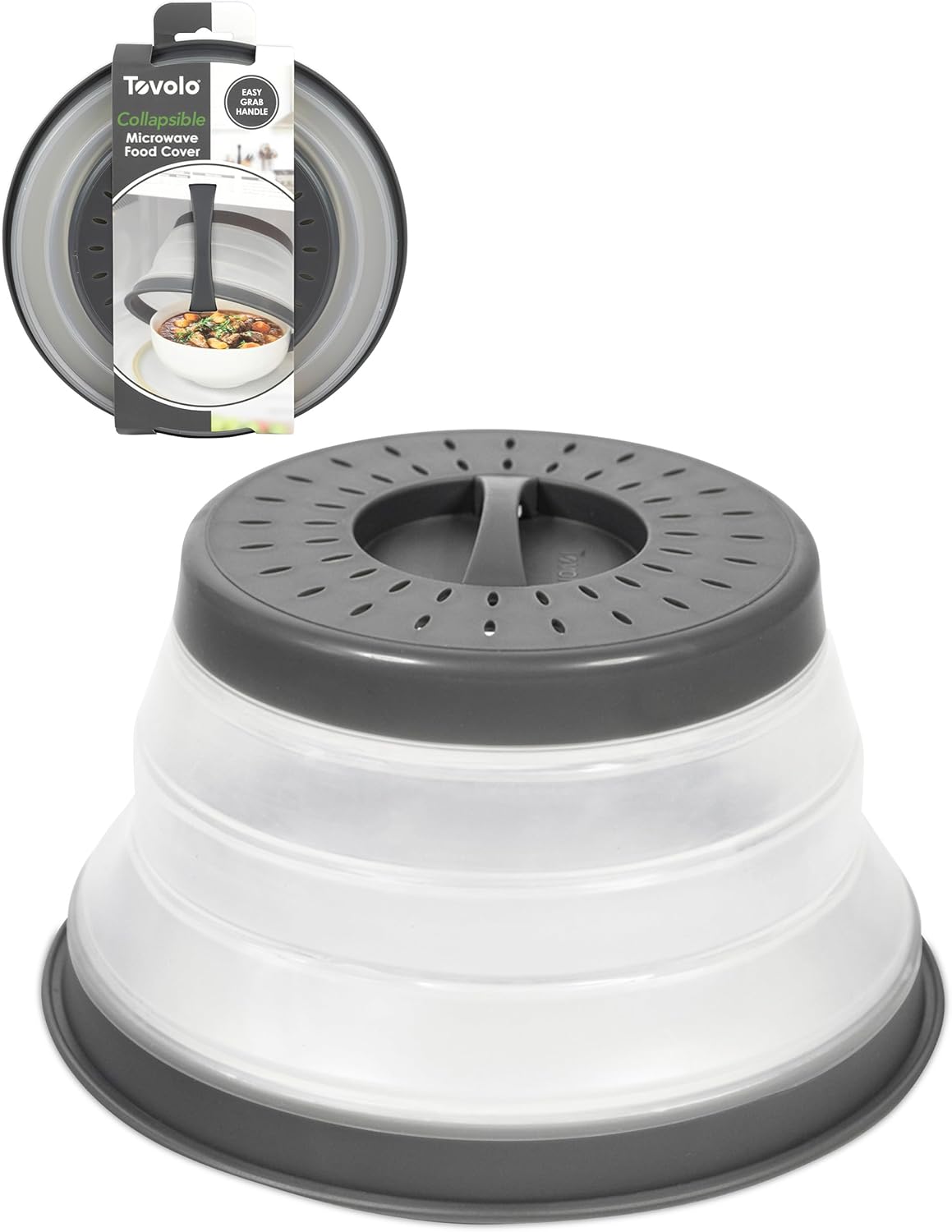 Keep your microwave spotless with Tovolo's ingenious 3 piece silicone microwave splatter lid set a complete collection that tackles the age old problem of messy microwave splatters while keeping your food perfectly moist and evenly heated. Each microwave splatter cover set includes three essential sizes that collapse for easy storage yet pop up to accommodate any dish in your kitchen. Crafted from premium BPA free silicone these microwave splatter covers dishwasher safe design means cleanup is as simple as tossing them in with your regular dishes. The thoughtful vented design releases just enough steam to prevent soggy food while containing splatters that would otherwise coat your microwave walls. Whether you're reheating last night's pasta warming up soup or melting butter these covers have you covered literally. The clever collapsible construction means no more wrestling with rigid covers that hog cabinet space. Each cover pops up to three inches tall for deeper dishes then collapses to less than an inch for streamlined storage. The perforated design even doubles as a colander for rinsing berries or draining vegetables adding unexpected versatility to your kitchen arsenal. With Tovolo's signature blend of smart design and practical functionality you'll wonder how you ever managed without this essential kitchen trio.