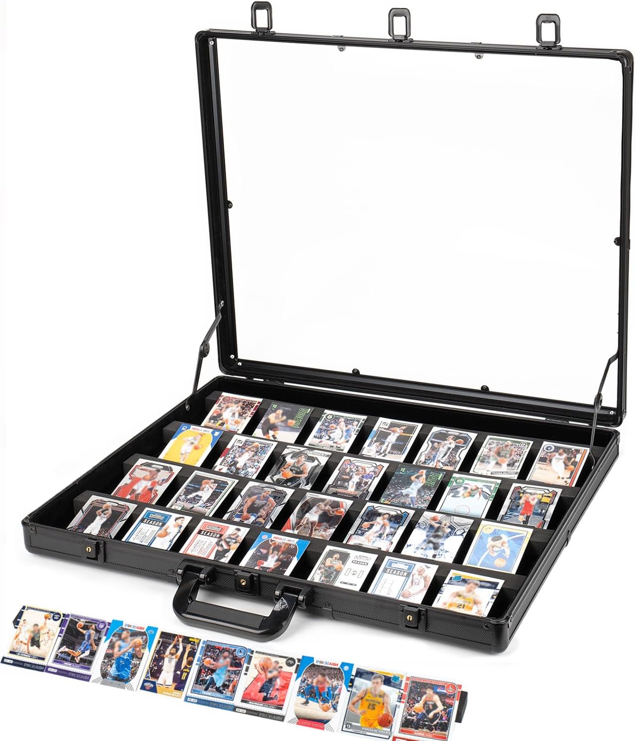 • 【Portable & Multi-Functional for Any Event】Designed with a convenient carry handle for easy transport to card shows, conventions, or retail displays(e.g.Sports Collectors Convention, TriStar Collectors Show, MagicCon). Perfect for collectors, retailers, and exhibitors showcasing TCG cards, memorabilia