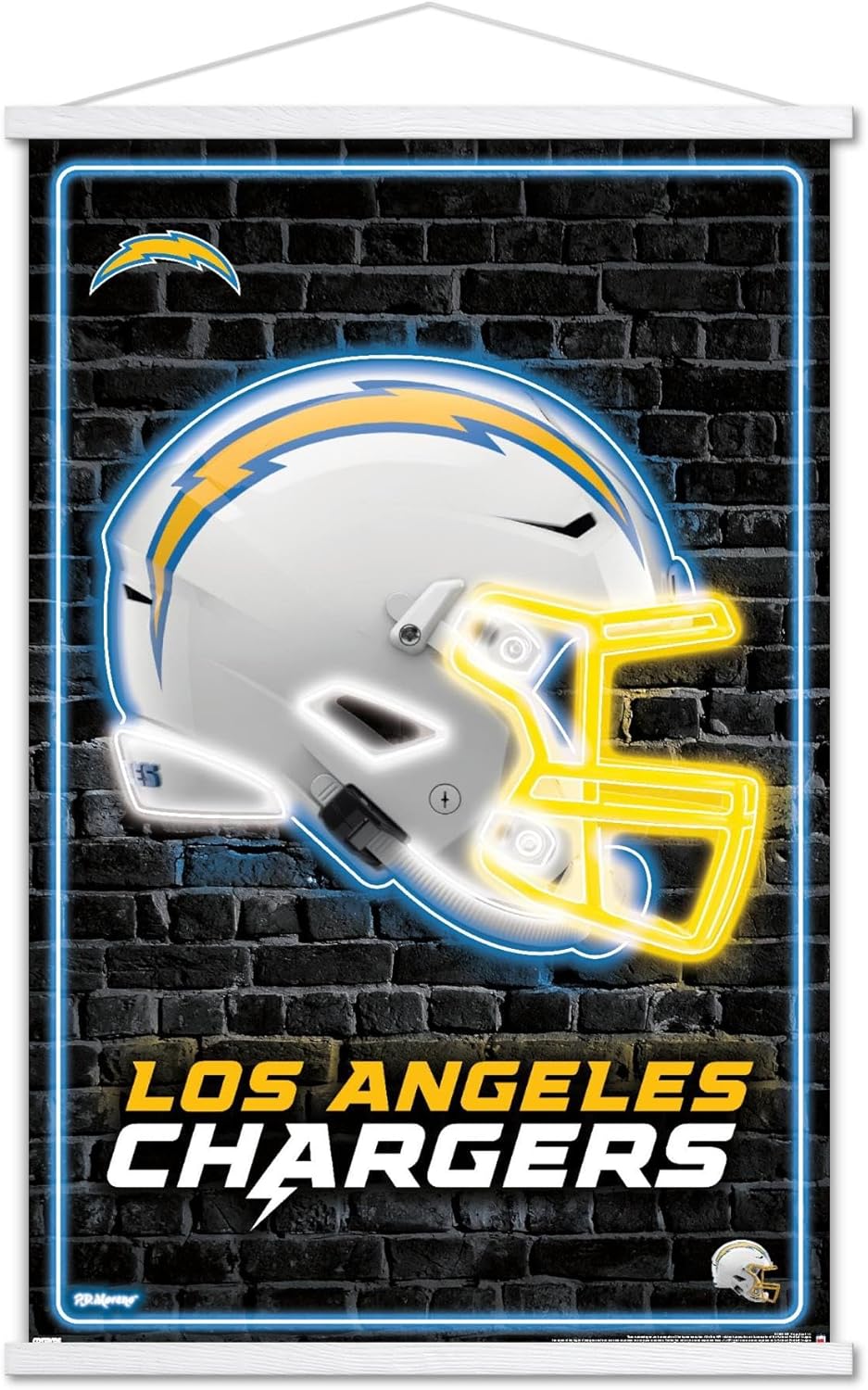 Trends International magnetic framed posters are everyone's favorite room decor! This NFL Los Angeles Chargers - Neon Helmet 23 Wall Poster is created with high-resolution artwork and is printed on glossy poster paper which enhances the colors to make a bold wall decor statement in any room. Decorate the bedroom, bathroom, kid's room, living room, office, dorm, and more! Our hanging wood poster frames are easy to hang so you’ll be able to enjoy the art in no time. Add these decorations alongside the other accessories on your party supplies list too! Trends International's wall posters are the perfect way to dress up your parties. A framed poster makes a great gift as well! Whether it's for a birthday, Christmas, house warming or for your best friend, they'll love receiving a poster and magnet frame bundle to show off their style.