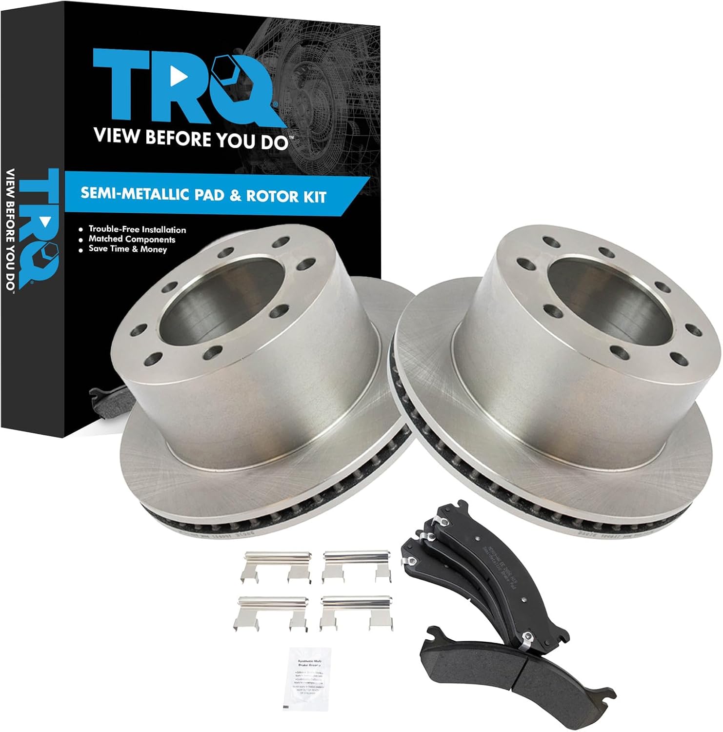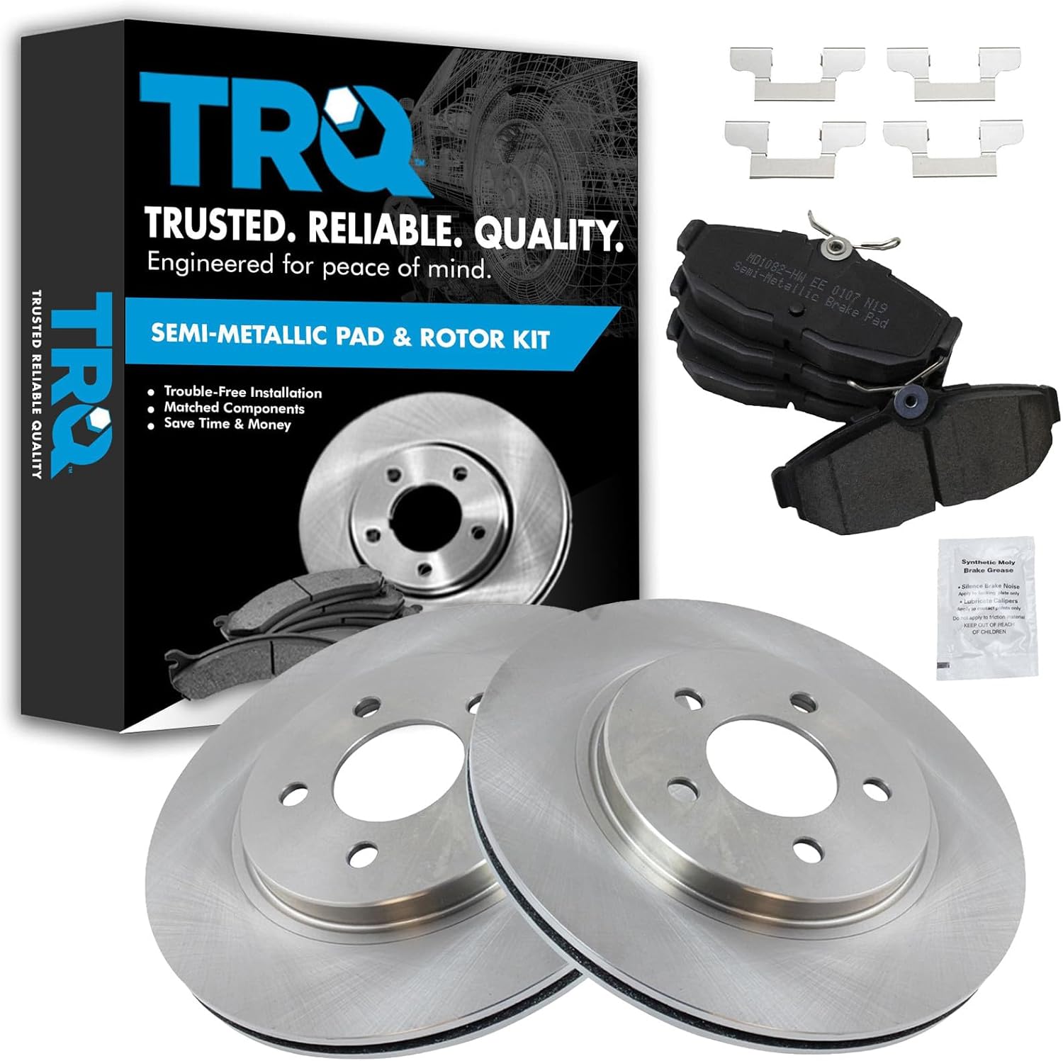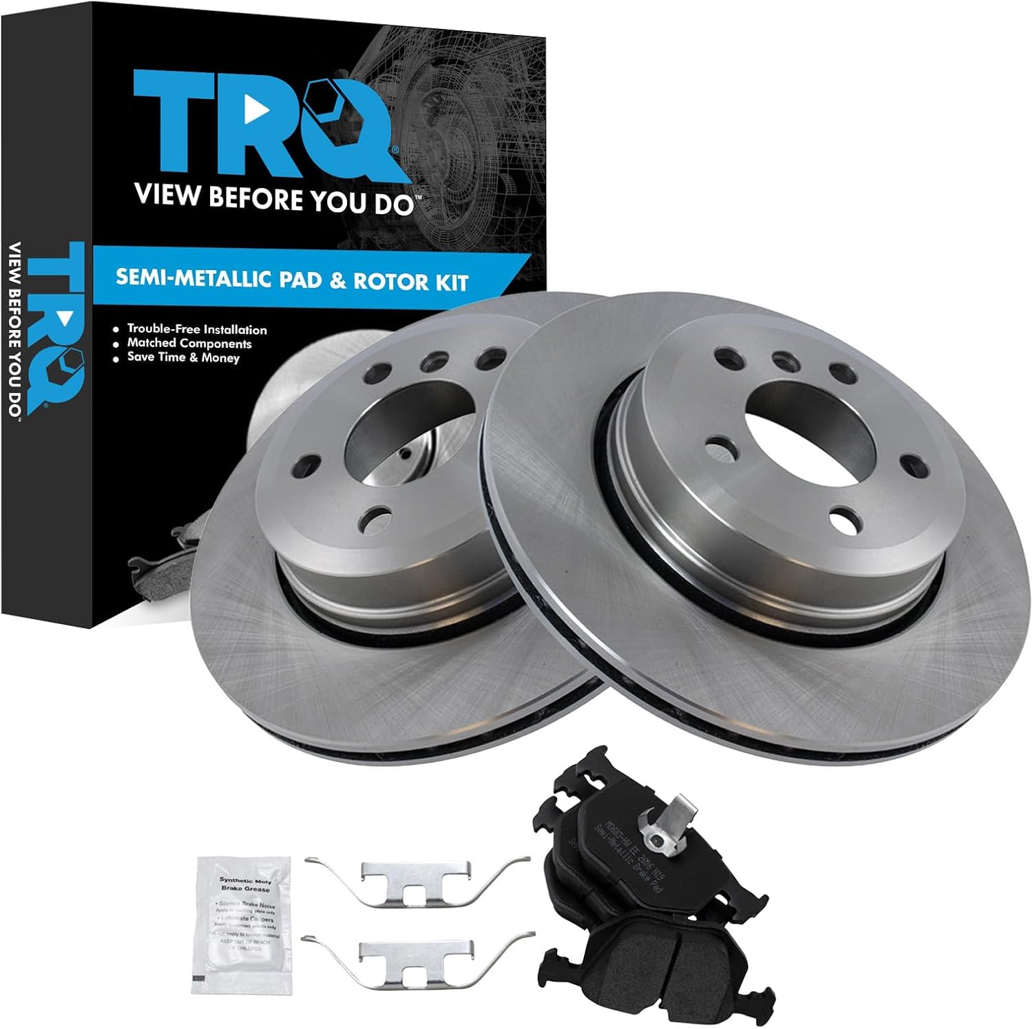 Semi-Metallic Brake Pad & Rotor KitKit Includes(1) Rear Semi-Metallic Brake Pad Set(2) Rear Brake Rotors11.61 in. (295mm) Rear Brake Rotor DiameterFitmentChevrolet Blazer 1997-00 - 4 Wheel Drive Rear 1999-00 - All Wheel Drive Rear 2001 - All Wheel Drive Rear 2001-05 - 4 Wheel Drive Rear 2003-05 - Rear Wheel Drive Rear with 95mm Overall Height Rear RotorsChevrolet S10 Pickup 1998-04 - RearGMC Jimmy 1997-99 - 4 Wheel Drive Rear 2000-01 - 4 Wheel Drive RearGMC S-15 Sonoma 1998-04 - RearIsuzu Hombre 1998-00 - RearOldsmobile Bravada 1997-01 - Olds RearProduct AttributesFriction Material Composition: Semi-metallicRear Brake Rotor Diameter: 11.61 in. (295mm)Wheel Lug Count: 5 LugBrake Pad Bonding Type: Premium PosiBrake Pad Friction Material: Semi-MetallicRear Brake Rotor Venting Type: VentedProduct Features Positive Molded - Less dust resulting in clean wheels G3000 Casting Alloy - Reduced noise and improved wear resistance Application Specific Design - Extended service life, no modificationsItem DetailsTRQ brake kits are designed to restore your brake system to like-new performance. TRQ brake pads are positive molded, thermal scorched, chamfered, and utilize a multi-layer shim for enhanced performance and service life. TRQ rotors have a non-directional finish that reduces the break-in period for new rotors as well as reducing vibrations throughout the rotor’s lifecycle. All products are fit and road-tested in our Massachusetts R&D facility to ensure we deliver on our promise of Trusted Reliable Quality.Reference Numbers18026156533-02373550385670756707FZN56707P56707R8180261560BD125505BR55038EHT729HPRT5180