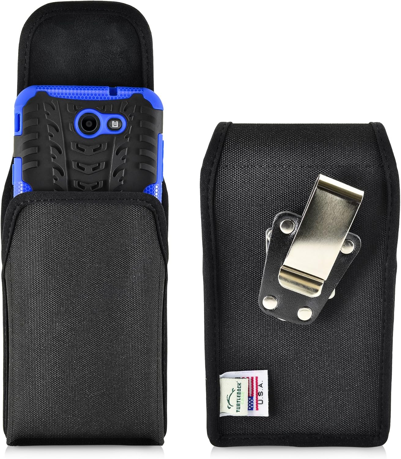 Turtleback Samsung Galaxy J7. No more fumbling around for your mobile phone in your jacket or bag--with our leather holster, made from premium bonded leather, your mobile phone will be kept safe from damage or theft. Plus, with a rotating, removable metal belt, you can clip your holster anywhere: to your belt, to your bag, even on your vehicle. The ergonomic design of our holster is both aesthetically pleasing and practical, and you'll find our leather holster is so comfortable, you won't even remember you're wearing it! Our vertical leather holster is designed and Assembled in USA, and your satisfaction is guaranteed!