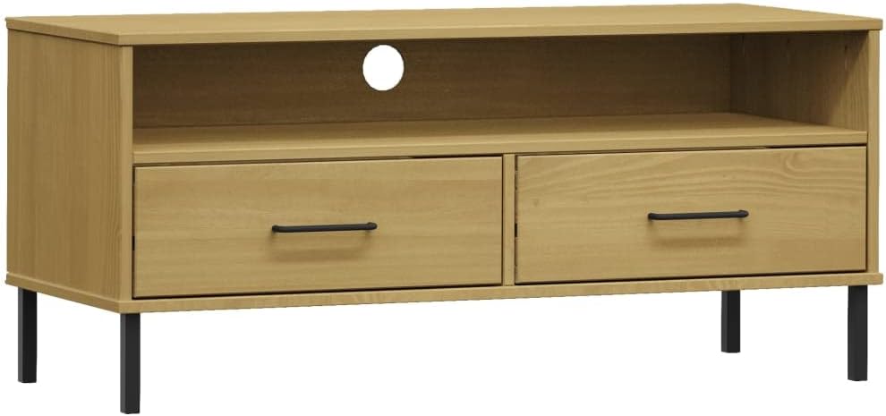 This wooden TV cabinet is designed to be a focal point of your room with a trendy yet practical design.Durable material: The TV stand is crafted from solid pine wood, which is a beautiful natural material. Pine wood has a straight grain, and the knots give the material its signature, rustic look.Spacious storage: The TV unit has 1 compartment and 2 drawers, which make it an ideal place for storing all your magazines, DVDs and other items.Displaying function: The sturdy top of the media cabinet is ideal for displaying decorative items like photo frames and plants.Metal feet: The metal feet of this media unit ensure sturdiness and stability.Note:Each product comes with an assembly manual in the box for easy assembly.Color: GrayMaterial: Solid pine wood, metalOverall dimensions: 41.7" x 15.7" x 18.3" (W x D x H)Drawer outer size: 19.5" x 6.3" (L x W)Drawer inner dimensions: 17.9" x 11.8" x 5.5" (W x D x H)Compartment dimensions: 40.2" x 15.4" x 5.3" (W x D x H)Leg height: 5.5"Features 2 drawersFeatures 2 metal handlesRange: "OSLO"