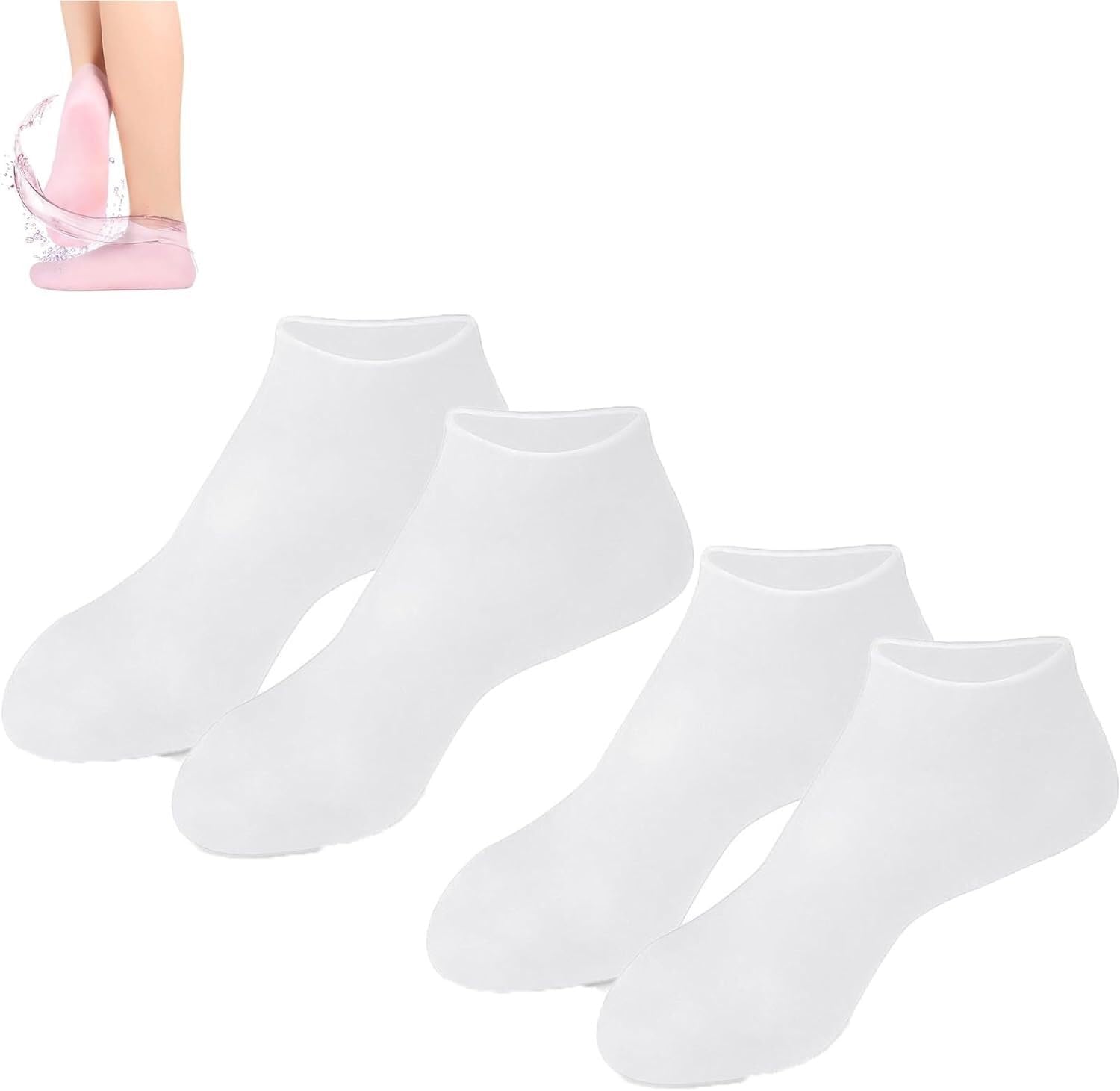 Moisturizing Socks,Foot Moisturizer Gel Socks, Moisturizing Foot Mask Exfoliating Silicone Socks Beach Protective Socks, Women Foot Spa Pedicure Silicone Socks, Silicone Socks for Dry Cracked Feet Women, Gel Socks Foot Care for Repairing Dry Feet, Cracked Heels & Softening Rough SkinFeature:1.Achieve pedicure at home.2.Relieve dry and cracked feet.3.Good elasticity.5.Easy to use.Specification:Name: Women's Foot Spa Pedicure Silicone SocksMaterial: SiliconeColor: Pink, White, BeigeSize: One size fits all, 35-43(5-11)Package Includes:2/4/6 Pairs * Moisturizing Silicone SocksNote:1.Due to different monitors and lighting effects, the actual color may be slightly different from the picture.2.Due to manual measurement and different measurement methods, please allow a deviation of 1-3 mm, Thanks for your understanding.