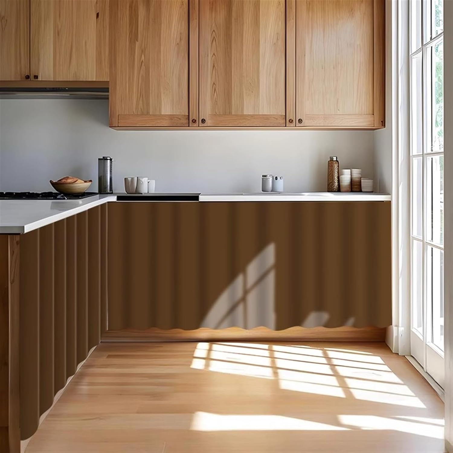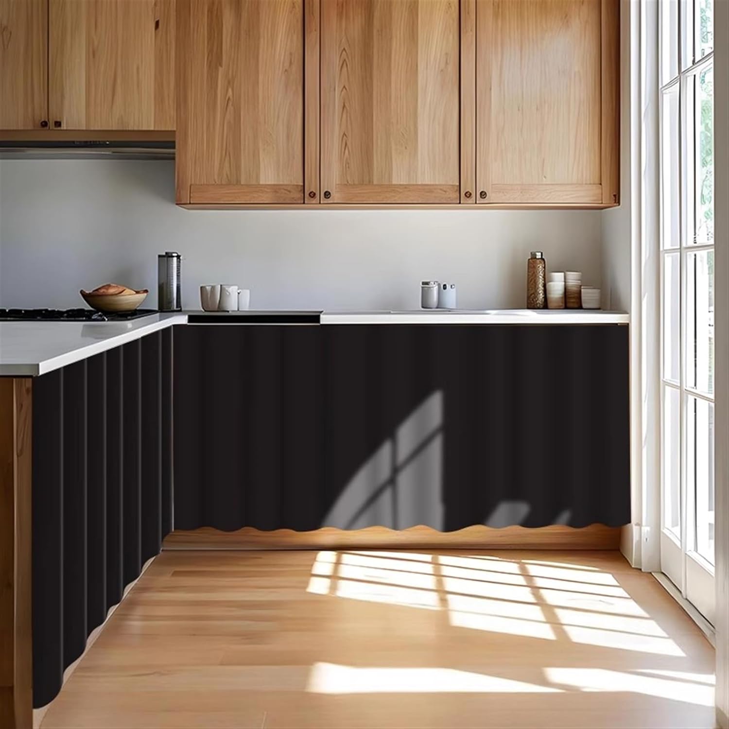 Cabinet Curtains for Bathroom Kitchen Privacy Dust-Proof Under Desk Privacy Drape for Laundry Room Material: Our under sink skirt are made of polyester fiber, waterproof polyester ensures longevity while providing good protection for your sink area. Privacy Protection and Beauty: This curtain can not only cover the surface defects of home appliances, but also provide a certain degree of privacy protection for your kitchen. Home Decoration: This dust curtain can be used for storage room shelves, small bedroom windows, bathroom cabinets, kitchen cabinets, under-sink areas, warehouses, laundry rooms, open wardrobes and bookcases, etc. Easy to Install: No need to install curtain rods, quickly install within 1 minute, follow the pictures for installation, apply tape to the window frame, and then fix the curtains onto the tape.