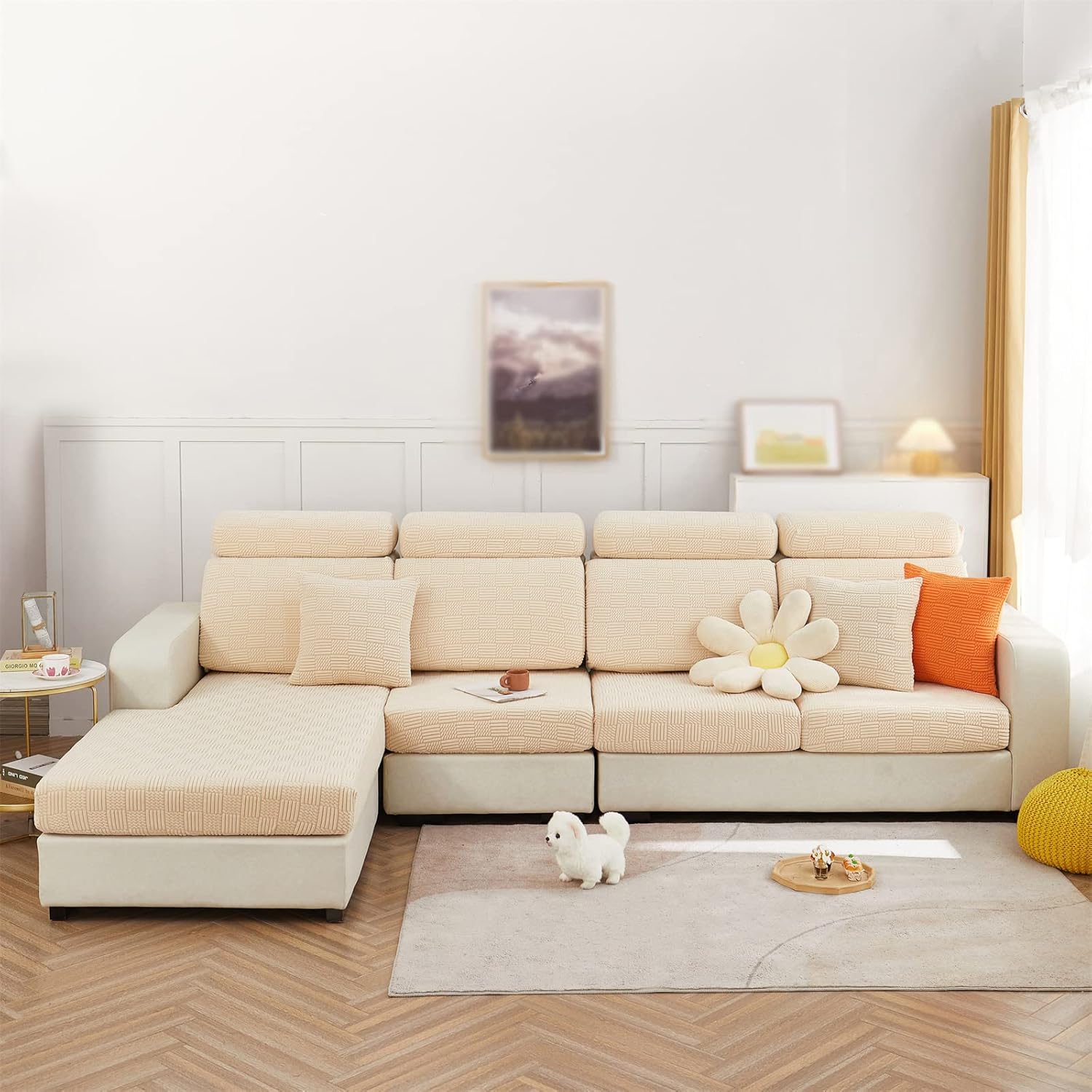 Made from high-quality, stretchy fabric, these covers are designed to fit snugly over your sofa and protect it from spills, stains, and everyday wear and tear.With multiple size options, including single, double, triple, chaise, and large sizes, you can find the perfect fit for your sofa.Range of colors to choose from, you can easily match your sofa cover to your existing decor.Our sofa covers are perfect for all types of sofas, including those made from different materials. Their easy-to-use design, you can easily remove and wash them whenever you need to.Here are the available sizes and dimensions for our sofa covers:Single Seat Cover Length Size:19.7-27.6inch/50-70cm Width Size:19.7-27.6inch/50-70cm Thickness Size:2-7.9inch/5-20cmDouble Seat Cover Length Size:39.4-49.2inch/100-125cm Width Size:19.7-27.6inch/50-70cm Thickness Size:2-7.9inch/5-20cmTriple Seat Cover Length Size:59.1-74.8inch/150-190cm Width Size:19.7-27.6inch/50-70cm Thickness Size:2-7.9inch/5-20cmChaise Cover Length Size:55.1-74.8inch/140-190cm Width Size:33.5-37.4inch/85-95cm Thickness Size:2-7.9inch/5-20cmLarge Single Seat Cover Length Size:25.6-37.4inch/65-95cm Width Size:25.6-37.4inch/65-95cm Thickness Size:2-7.9inch/5-20cmLarge Double Seat Cover Length Size:37.4-53.1inch/95-135cm Width Size:25.6-37.4inch/65-95cm Thickness Size:2-7.9inch/5-20cmLarge Triple Seat Cover Length Size:53.1-65inch/135-165cm Width Size:25.6-37.4inch/65-95cm Thickness Size:2-7.9inch/5-20cmLarge Chaise Cover Length Size:65-78.7inch/165-200cm Width Size:25.6-37.4inch/65-95cm Thickness Size:2-7.9inch/5-20cmExtra Large Chaise Cover Length Size:63-74.8inch/160-190cm Width Size:37.4-47.2inch/95-120cm Thickness Size:2-7.9inch/5-20cmBack Cover Length Size:23.6-35.4inch/60-90cm Width Size:11.8-19.7inch/30-50cm Thickness Size:2-7.9inch/5-20cmPackage Contents: 1pc* Sectional Sofa Parts