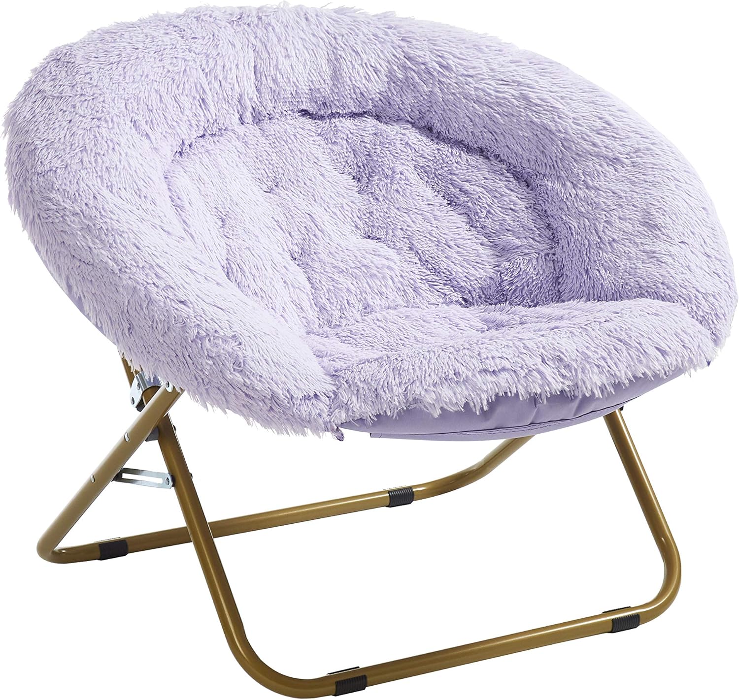 About This Item We aim to show you accurate product information. Manufacturers, suppliers and others provide what you see here, and we have not verified it. See our disclaimer Oversized for additional comfort Measures: 37"L x 30"W x 30"D Weight Capacity: 225 pds Spot clean Accent any room with this Urban Shop Mongolian Oversized Moon Chair. It has a wide design and cozy 100 percent polyester fabric for a comfortable place to study, relax or watch TV after a long day. The Urban Shop Mongolian Oversized Moon Chair features a durable steel frame and is easy to transport or store. It's ideal for dorm rooms, apartments, bedrooms and more. It adds a pop of color to any room and is sure to become everyone's favorite spot to sit or lounge. Add contemporary style to your living room or den area, entertainment room or any space where you need comfy extra seating. This Urban Shop Mongolian Oversized Moon Chair makes a wonderful addition to your home and is also ideal for gaming or to place in a playroom. No assembly required.