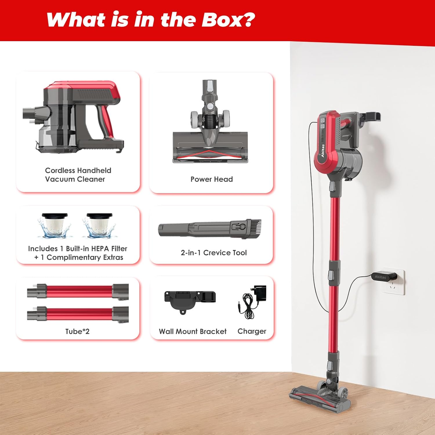 Experience the next level of home cleaning with our cordless vacuum equipped with a 3rd generation brushless digital motor (450W BLDC). It delivers up to impressive 45,000Pa suction power, providing a powerful and deep cleaning cleaning on any surface - from carpets and hardwood floors to tile. Dust, dirt and pet hair are easily removed with high precision. The efficient built-in 8-cell lithium battery provides up to 60 minutes of usage in ECO mode, 25 minutes in Normal Mode and 10 minutes in Max mode. With a full charge of only 4-5 hours, this vacuum cleaner is perfect for cleaning the whole home without interruptions. Despite its strong performance, it weighs only 2.15 kg, making it one of the lightest powerful cordless vacuum cleaners. It is easy to lift, carry and maneuver - ideal for stairs, high surfaces and long-term use. The motorized, tangle-free turbo head is equipped with green LED lights that clearly reveal dirt and particles, even in dark corners or under furniture. For added convenience, a practical wall mount is included for storage, as well as an additional HEPA filter at no extra cost.