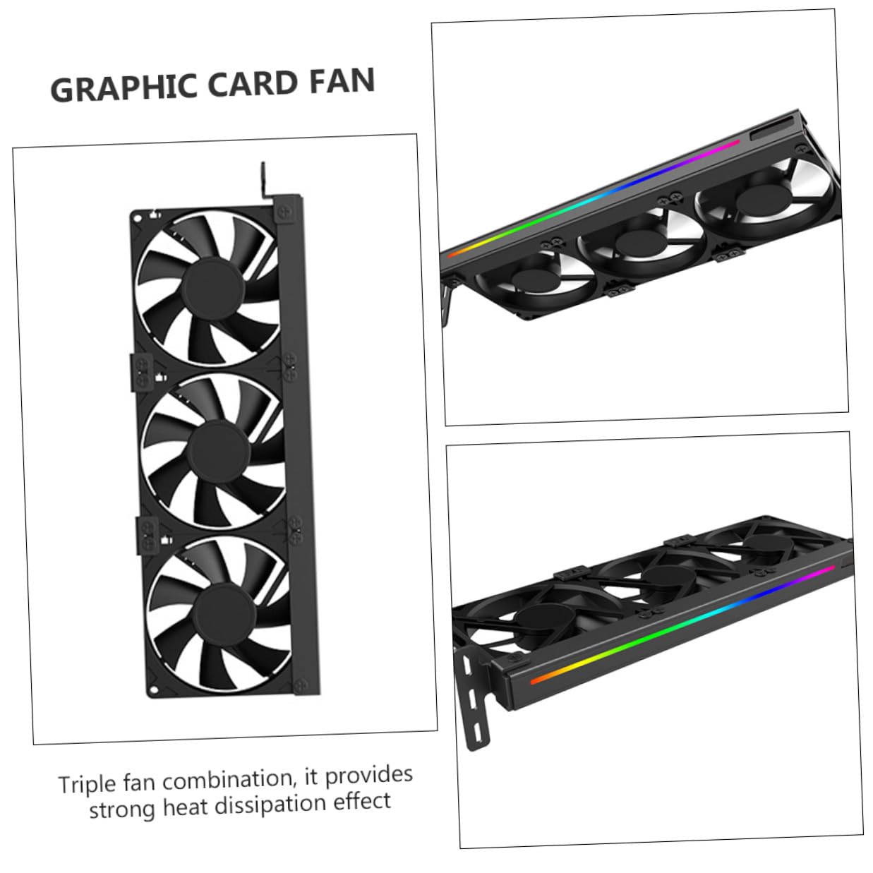 Package Include 1 x GPU cooler Characteristics Rotation speed: 1800RPM+/-10% RGB Cooling Fan Rated current: 0.36A Graphics Card Cooling Fan -Product Info:Cooling fan -Color: Black -Material: ABS Connector: 5V/3-pin ARGB internal cooling fan Rated voltage: 12V Cooling Fan for Graphic Card -Size: 30.00X10.00X2.00cm/11.79X3.93X0.79in - Providing direct wind blowing for better graphic card heat dissipation tiny gpu fan. - Colorful RGB light effect, offering simple and classy light effect. - Triple fan design, improves the heat dissipation ability of the GPU radiator gpu cooling. - If your motherboard support RGB color control, you can connect 3-pin female port with motherboard for 16 and breathing light mode. - It is in stable characteristics, high performance and it is in great reliability, simple, easy to install card cooling.Goods Descriptiongraphic card cooling Fine workmanship, ensures practicality.Desktop GPU Fan Features the ABS material, which has high durability, not easy to deform.gpu coolers This graphic card cooling device is made of , which can withstand use