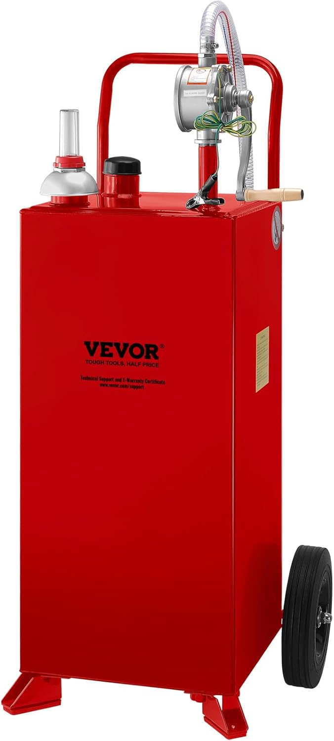 VEVOR 30 Gallon Fuel Caddy, Gas Storage Tank & 4 Wheels, with Manual Transfer Pump, Gasoline Diesel Fuel Container for Cars, Lawn Mowers, ATVs, Boats, More, Yellow