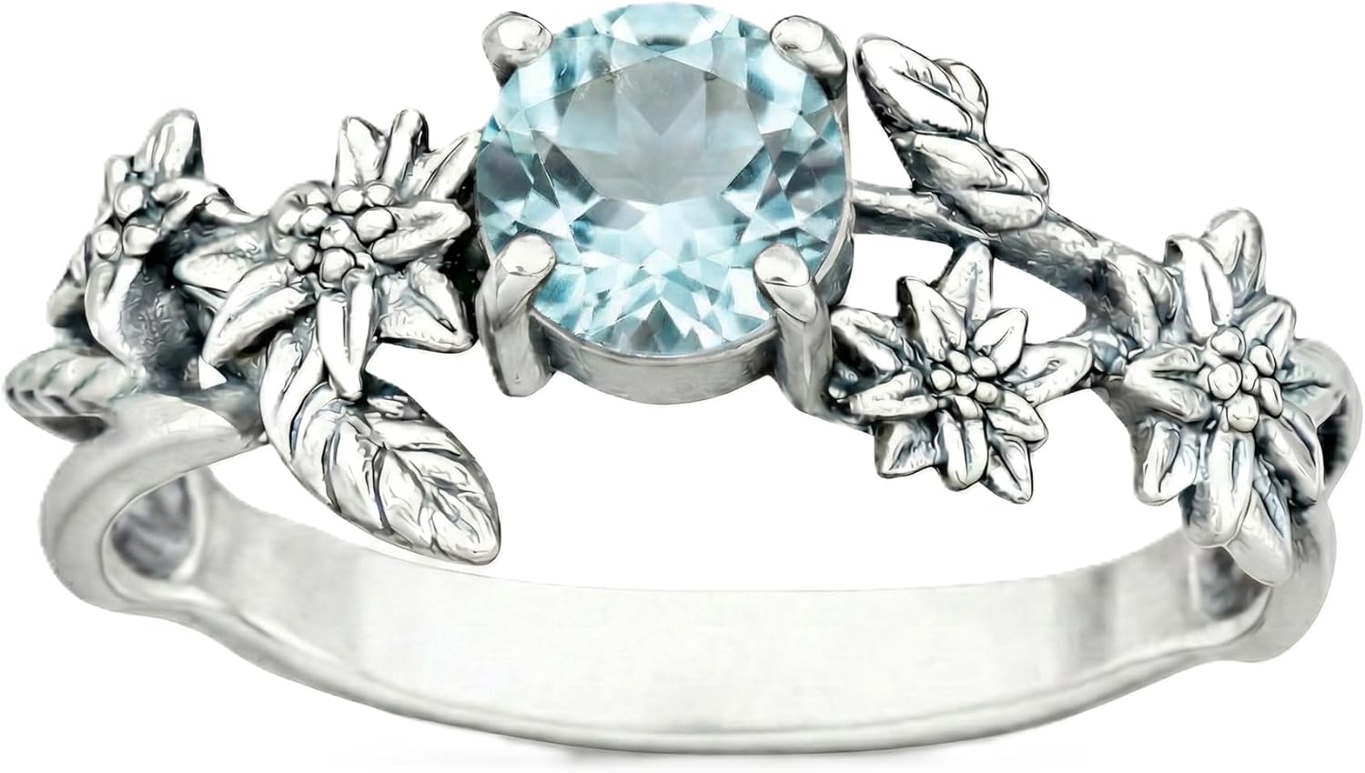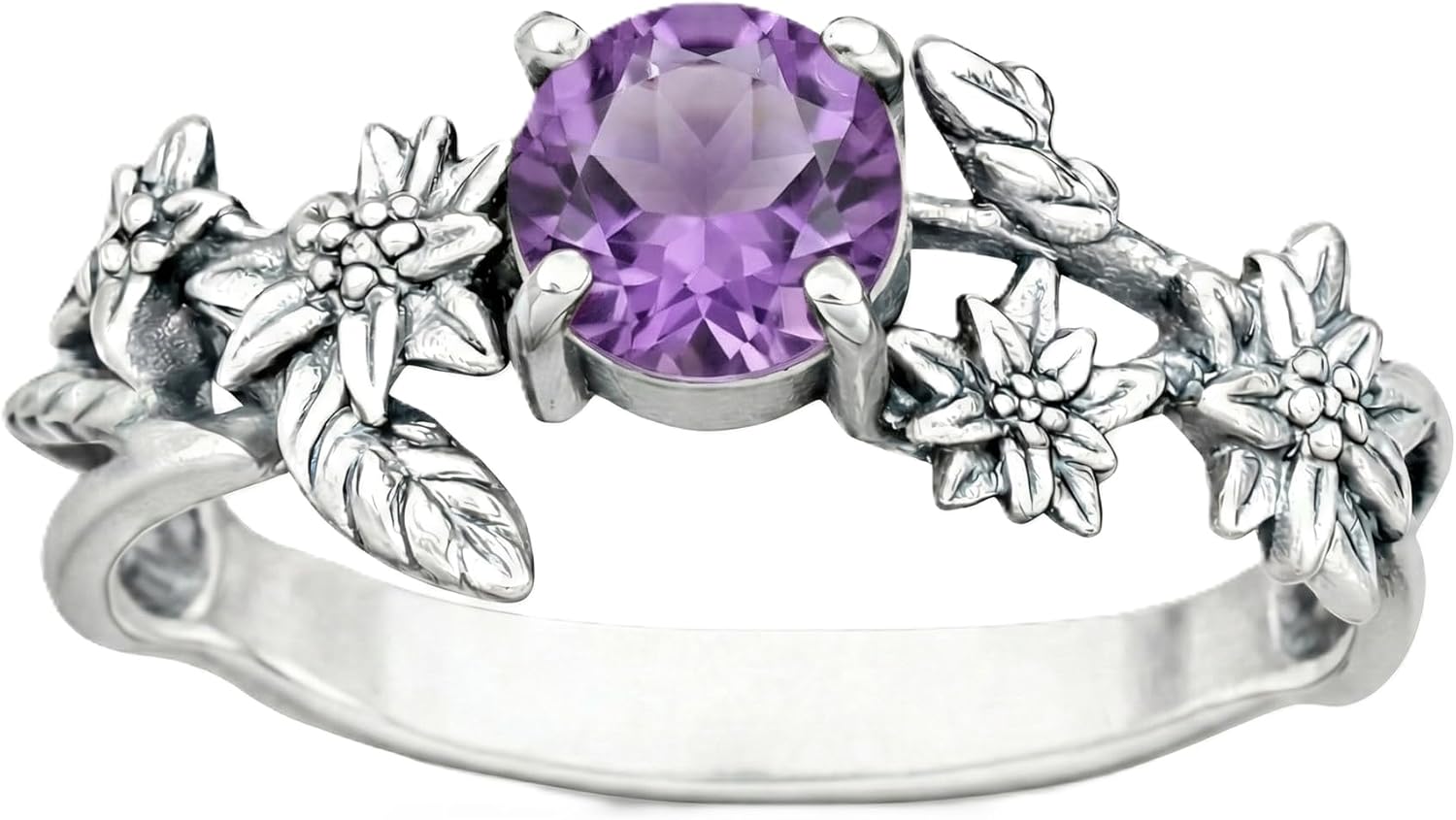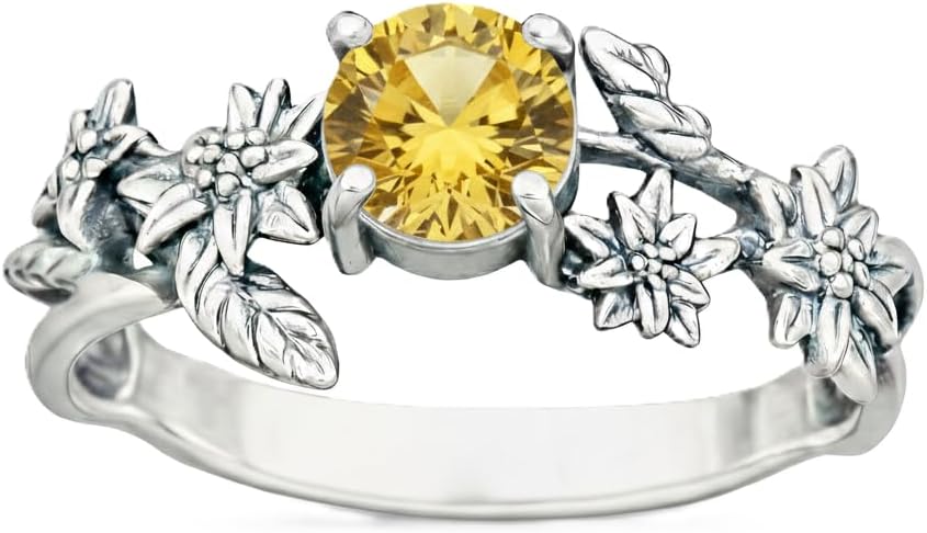 Celebrate individuality, nature, and timeless craftsmanship with this JIYAME handcrafted 925 sterling silver birthstone ring, designed for those who appreciate meaningful jewelry with an artistic edge. The round-cut centerpiece is framed by a distinctive sterling silver floral band, inspired by vintage Victorian and Art Deco motifs. The sculpted detailing adds depth, texture, and radiant brilliance from every angle. Choose from 12 traditional birthstones or our popular statement gemstones including Black Onyx, Labradorite, and Moss Agate, making it a perfect personal keepsake or thoughtful gift. Whether worn as a birthstone ring, statement ring, or everyday silver jewelry, this design stands out with its bold yet refined character.