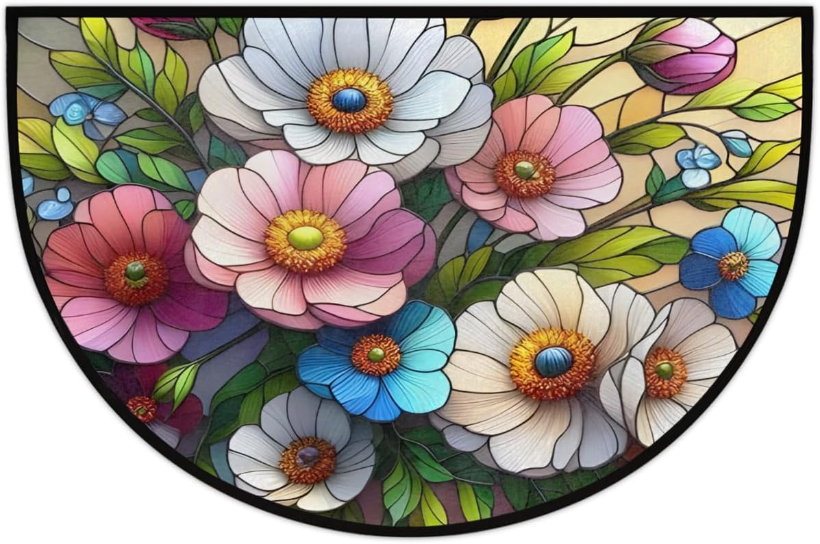 PRODUCT SPECIFICATIONSSize: 36x24n / 91.4x61cm Material: Front side --100% microfiber polyester Backside--non-skid dot plastic Shape: Half Round/Half Circle/Half MoonPackage:1 x Half Round Area RugStyle:Half Area Rug/ Half Round Rug /Half Circle Rug/Half Round MatsPRODUCT FEATURES:1:Keep Floor Clean & Dry, It absorbs water quickly and dries quickly, protecting the floor from moisture, dirt and scratches.2:Non-Skid Backing, Comes with build in anti-slip doormat pad mat with non-skid dot plastic back for maximum grip to prevent you to slip.3:Easy to Clean: The door mats are easy to clean, you can just use vacuum to clean it on daily. If it has been used for a long time, customer can use wash machine to clean the mats.4:High quality durable materials will not break down or compress over time. It is lightweight and could be continually using for long time.5:Perfect decoration, A simple way to make the living room, bedroom, hallway or room bright, colorful and warm. 6:Multi-Purpose Usage, Our round carpet is an ideal choice for home decoration, suitable for bedroom, living room, study room, play room, kid's room, baby room, office, women yoga, dormitory, pet house, etc.7:Perfect Gift, It can be great gift choice for Mother's Day, Father's Day, Halloween, Christmas, Thanksgiving, Birthday, New Year, Home Decor and more.Notes:If you have any questions, you are welcome to contact us and we will try our best to satisfy you!