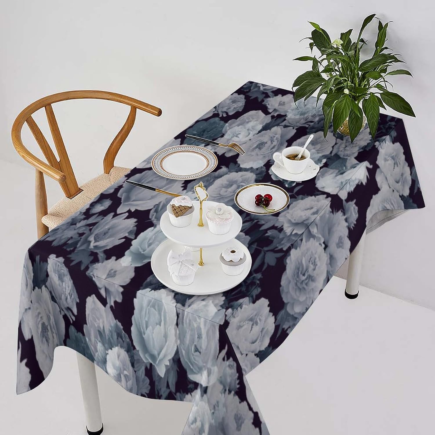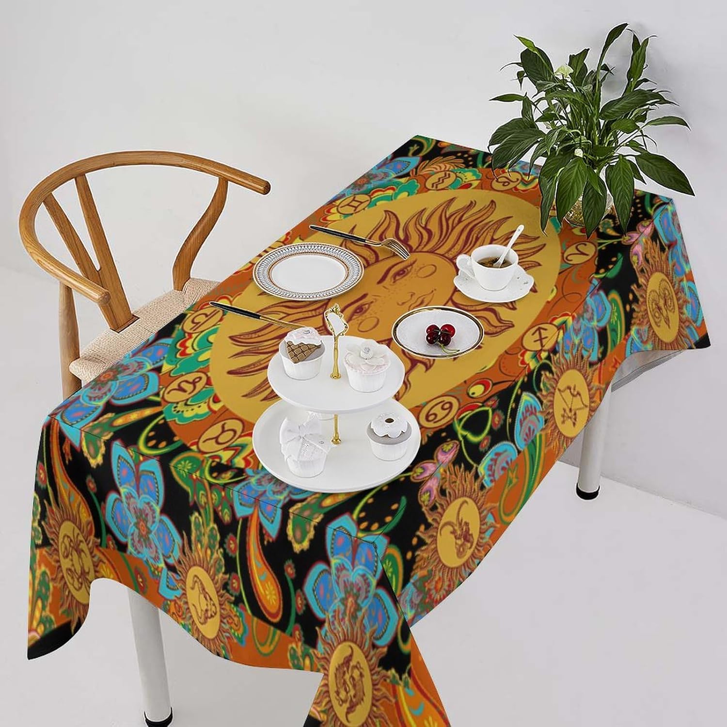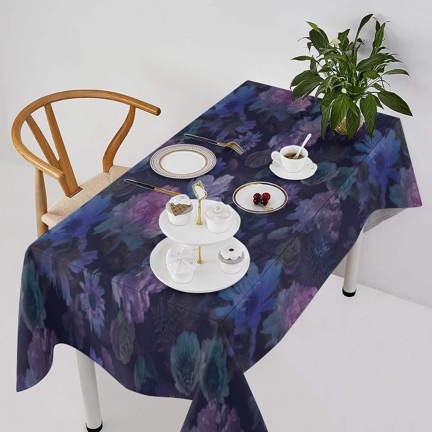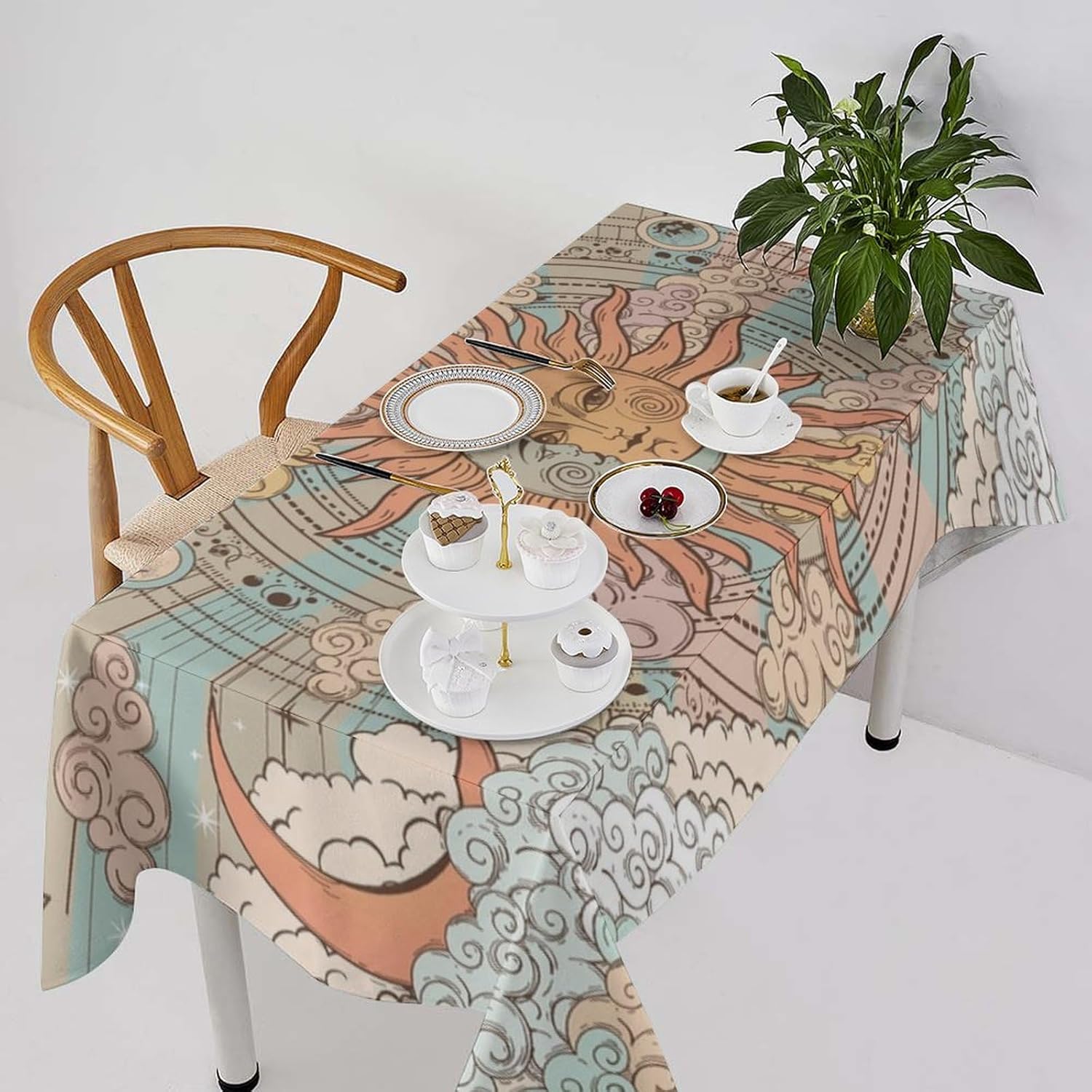 How to choose the size of Tablecloth 1.The width of your tablecloth= the width of your table + droop length*2. 2.The length of your tablecloth=the length of your table + droop length*2. 3.Droop length:For dining table, each side 8-12' is ok. For tea table, each side 4-8' is ok. 1.These table over use water resistant spillproof wipeable polyester fabric are suitable for any indoor and outdoor decorative and functional use(Occation: cafe, dinner, brunch, wedding, party and more). 2.No wrinkles, stains and easy to clean. When there occurs stubborn oil stain, don't worry, don't bleach. Putting into laundering machine or hand washing can make it quickly clean. The crease after wash can be easily ironed away. And it still remains excellent waterproof effect when reusing. 3.This tablecloth uses one side digital printing and heat dye sublimation technique. 4.Due to the many variations in monitors and browsers, color samples may appear slightly different than actual product.