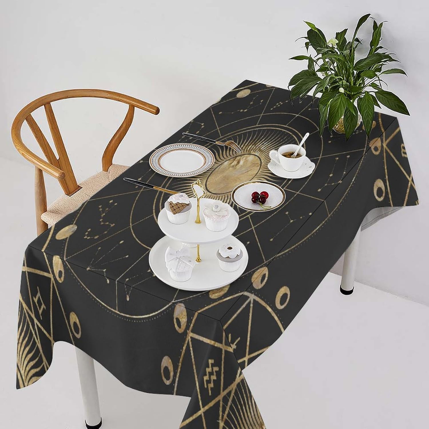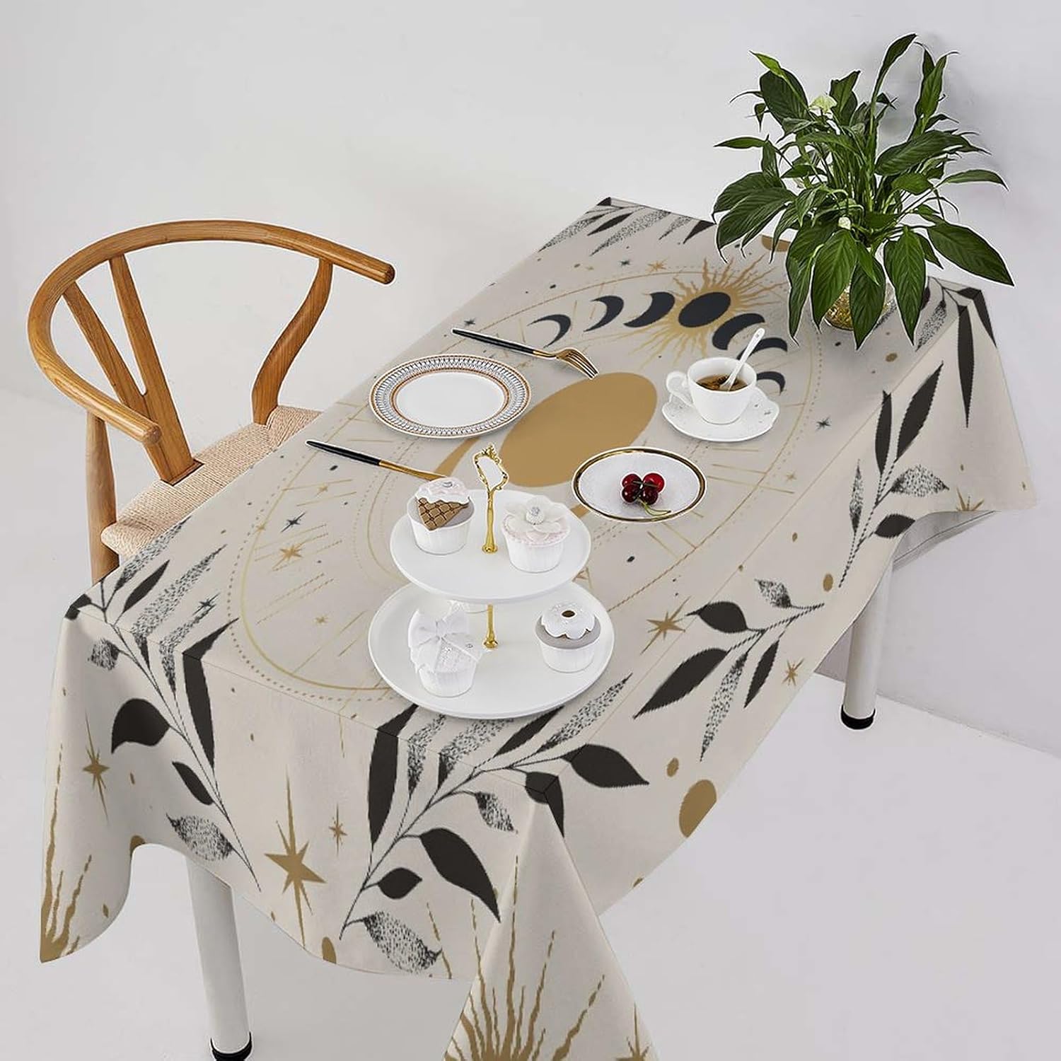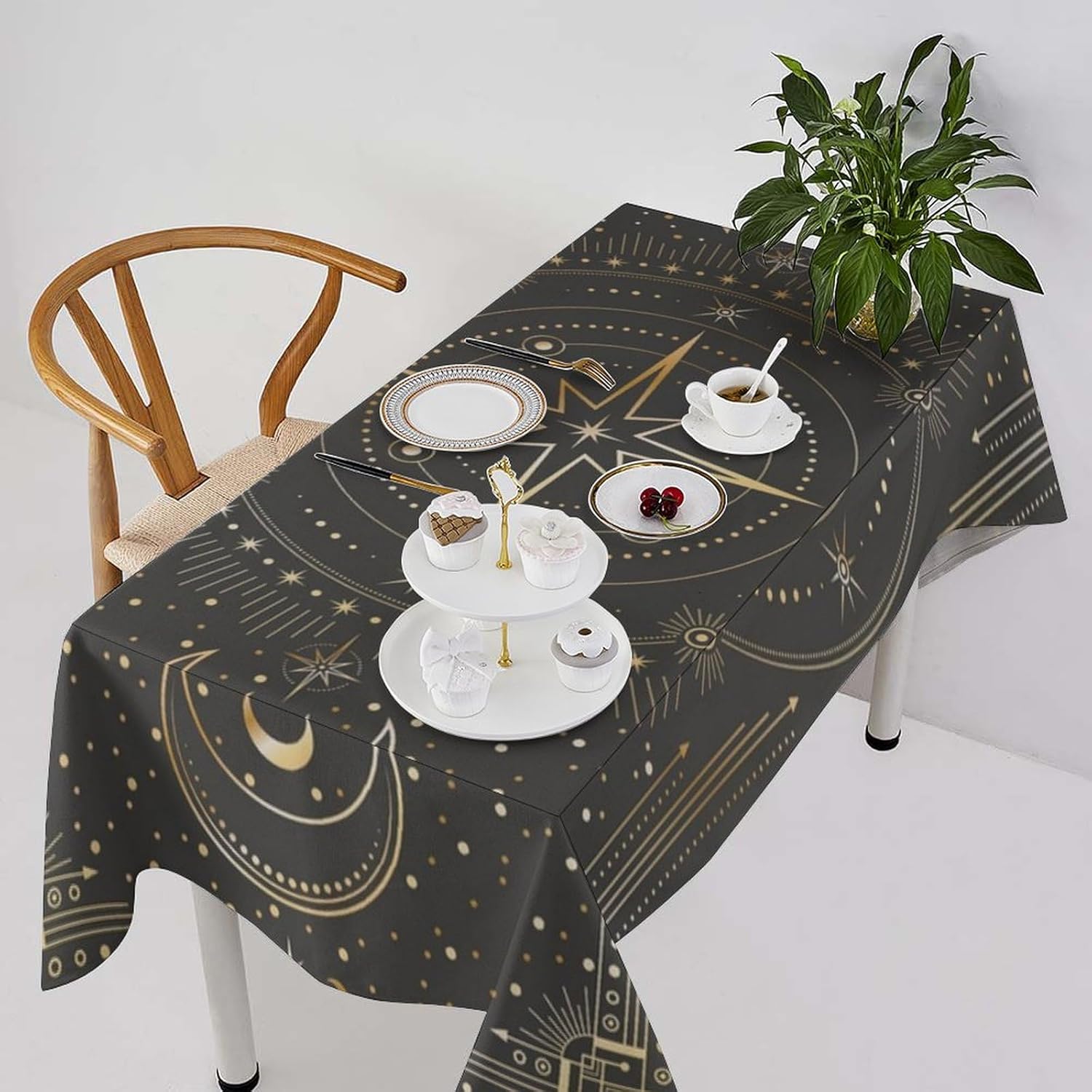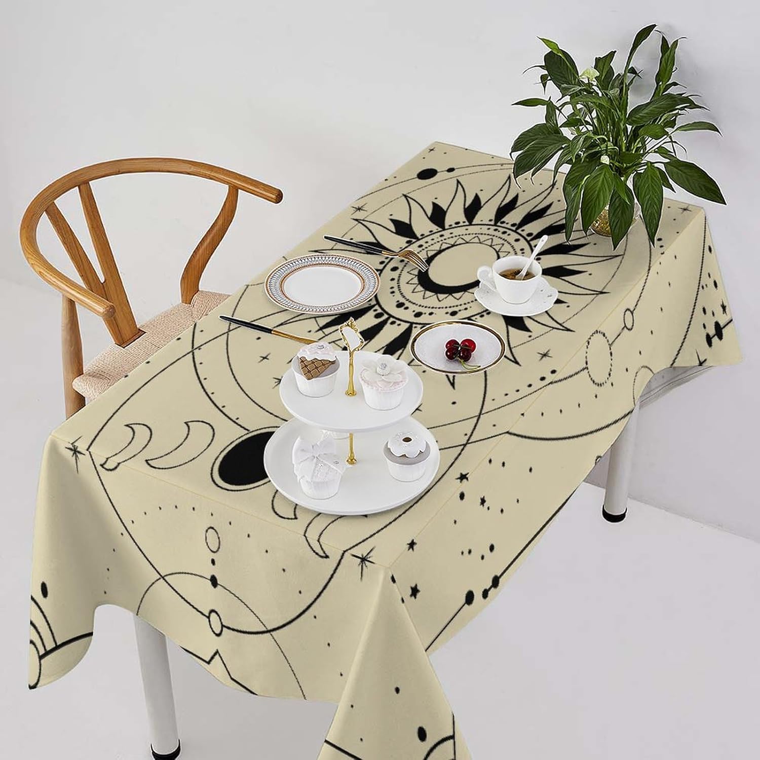 How to choose the size of Tablecloth 1.The width of your tablecloth= the width of your table + droop length*2. 2.The length of your tablecloth=the length of your table + droop length*2. 3.Droop length:For dining table, each side 8-12' is ok. For tea table, each side 4-8' is ok. 1.These table over use water resistant spillproof wipeable polyester fabric are suitable for any indoor and outdoor decorative and functional use(Occation: cafe, dinner, brunch, wedding, party and more). 2.No wrinkles, stains and easy to clean. When there occurs stubborn oil stain, don't worry, don't bleach. Putting into laundering machine or hand washing can make it quickly clean. The crease after wash can be easily ironed away. And it still remains excellent waterproof effect when reusing. 3.This tablecloth uses one side digital printing and heat dye sublimation technique. 4.Due to the many variations in monitors and browsers, color samples may appear slightly different than actual product.