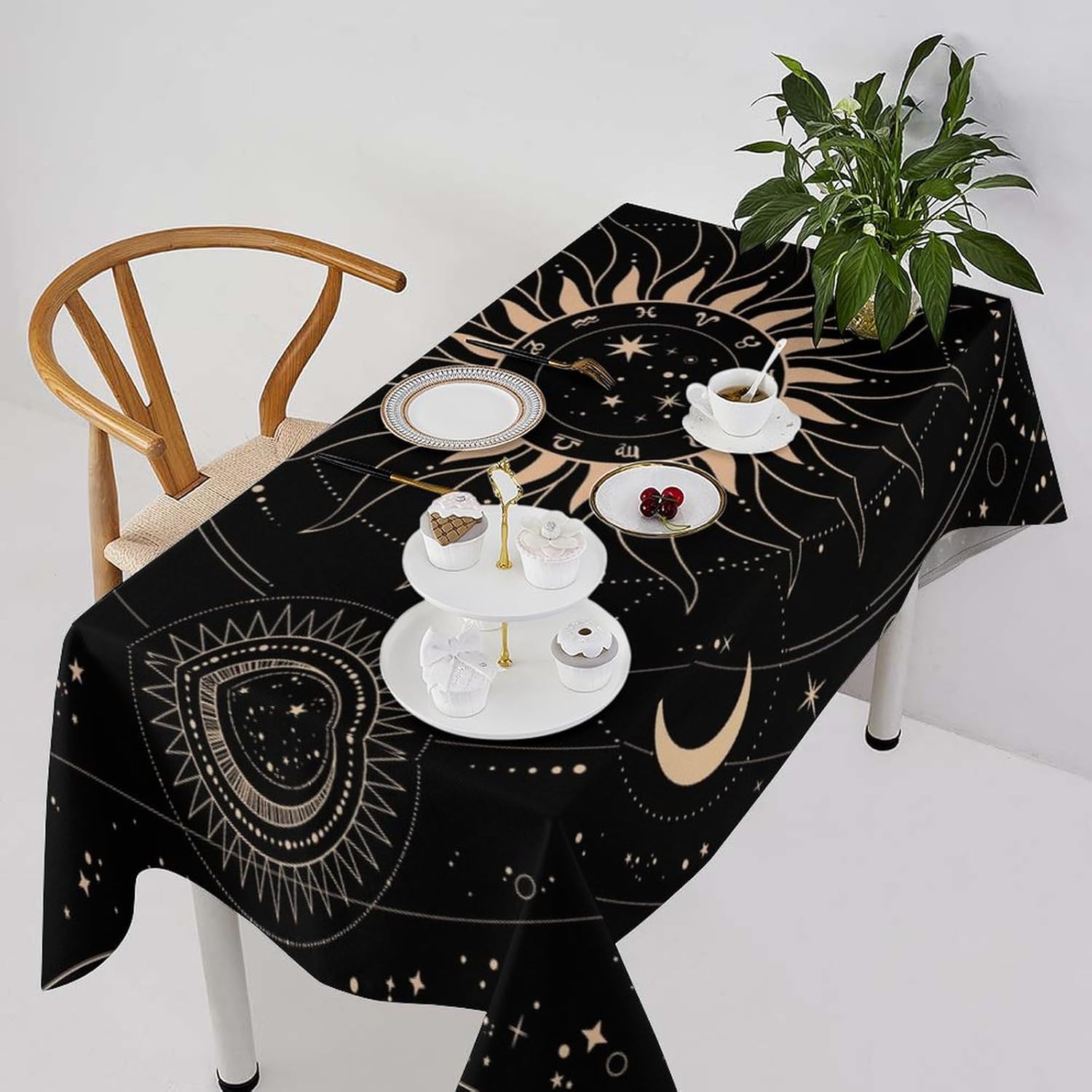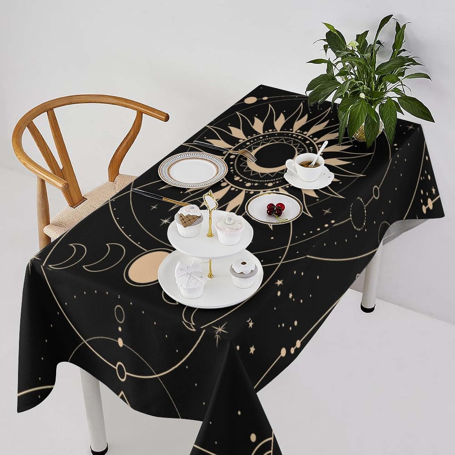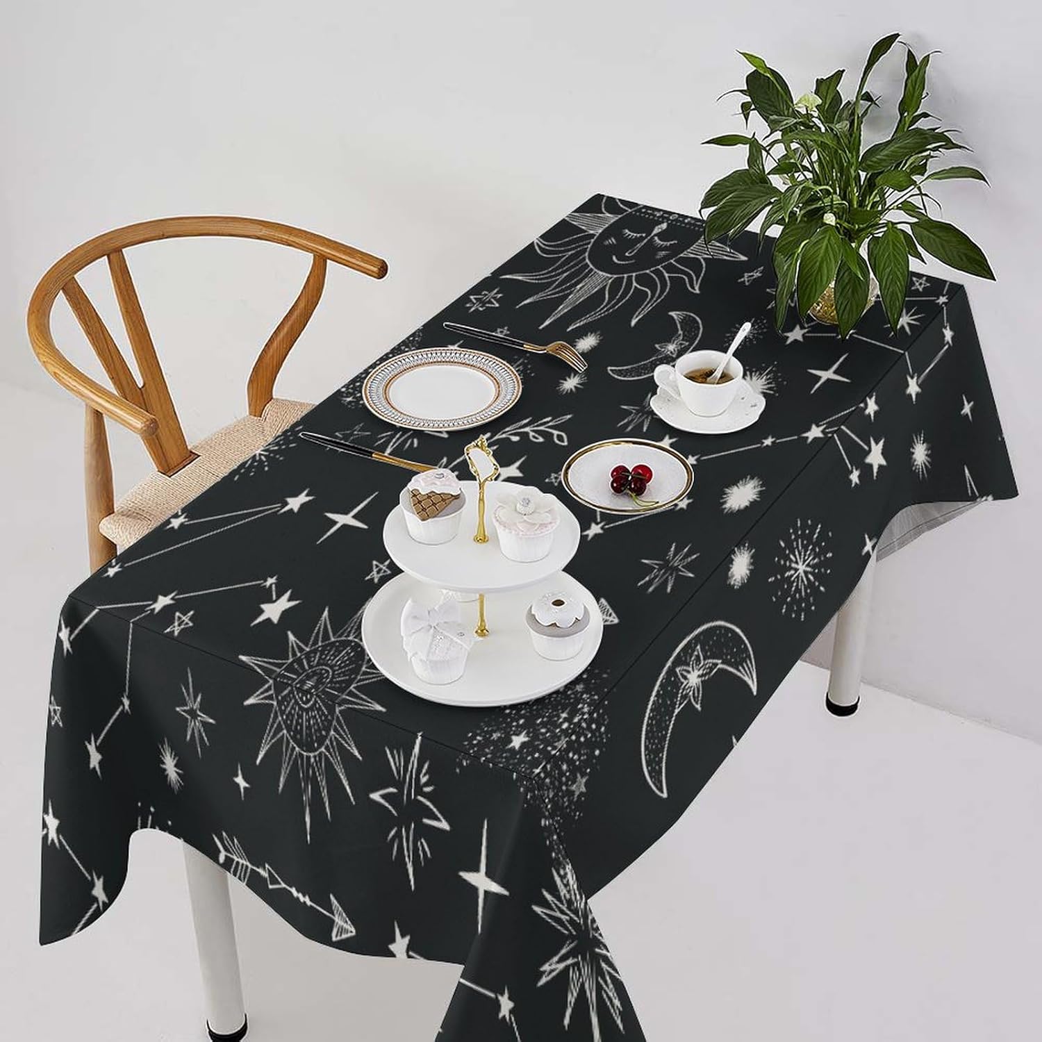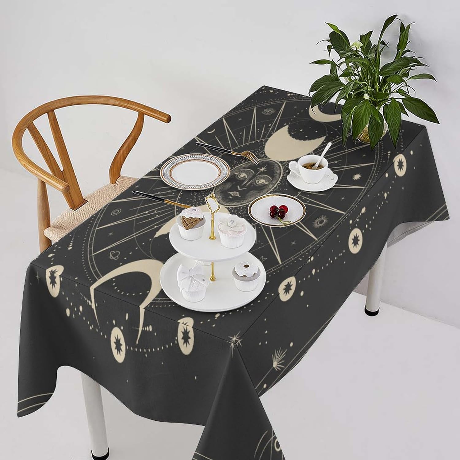 How to choose the size of Tablecloth 1.The width of your tablecloth= the width of your table + droop length*2. 2.The length of your tablecloth=the length of your table + droop length*2. 3.Droop length:For dining table, each side 8-12' is ok. For tea table, each side 4-8' is ok. 1.These table over use water resistant spillproof wipeable polyester fabric are suitable for any indoor and outdoor decorative and functional use(Occation: cafe, dinner, brunch, wedding, party and more). 2.No wrinkles, stains and easy to clean. When there occurs stubborn oil stain, don't worry, don't bleach. Putting into laundering machine or hand washing can make it quickly clean. The crease after wash can be easily ironed away. And it still remains excellent waterproof effect when reusing. 3.This tablecloth uses one side digital printing and heat dye sublimation technique. 4.Due to the many variations in monitors and browsers, color samples may appear slightly different than actual product.