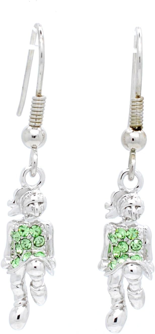 These stunning irish dancer earrings are great for the dancer in your life! We also carry the matching necklace in both a mini and large style for these earrings. These fish hook style earrings measures 1-1/2" tall (including the hook - actual pendant measures 3/4"). The earrings are rhodium plated making them resistant to tarnishing and great for sensitive ears. These earrings were exclusively designed and manufactured by Violet Victoria.