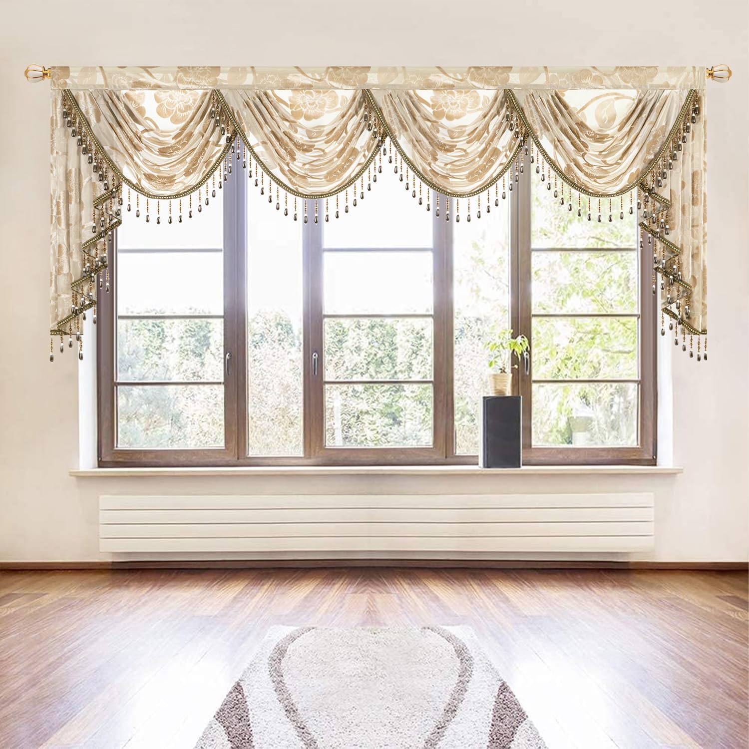 | Special Feature | Elegant Floral Design, Handmade Beaded Tassels, Light Filtering Sheer Fabric, Quick Dry, Rod Pocket Header |
