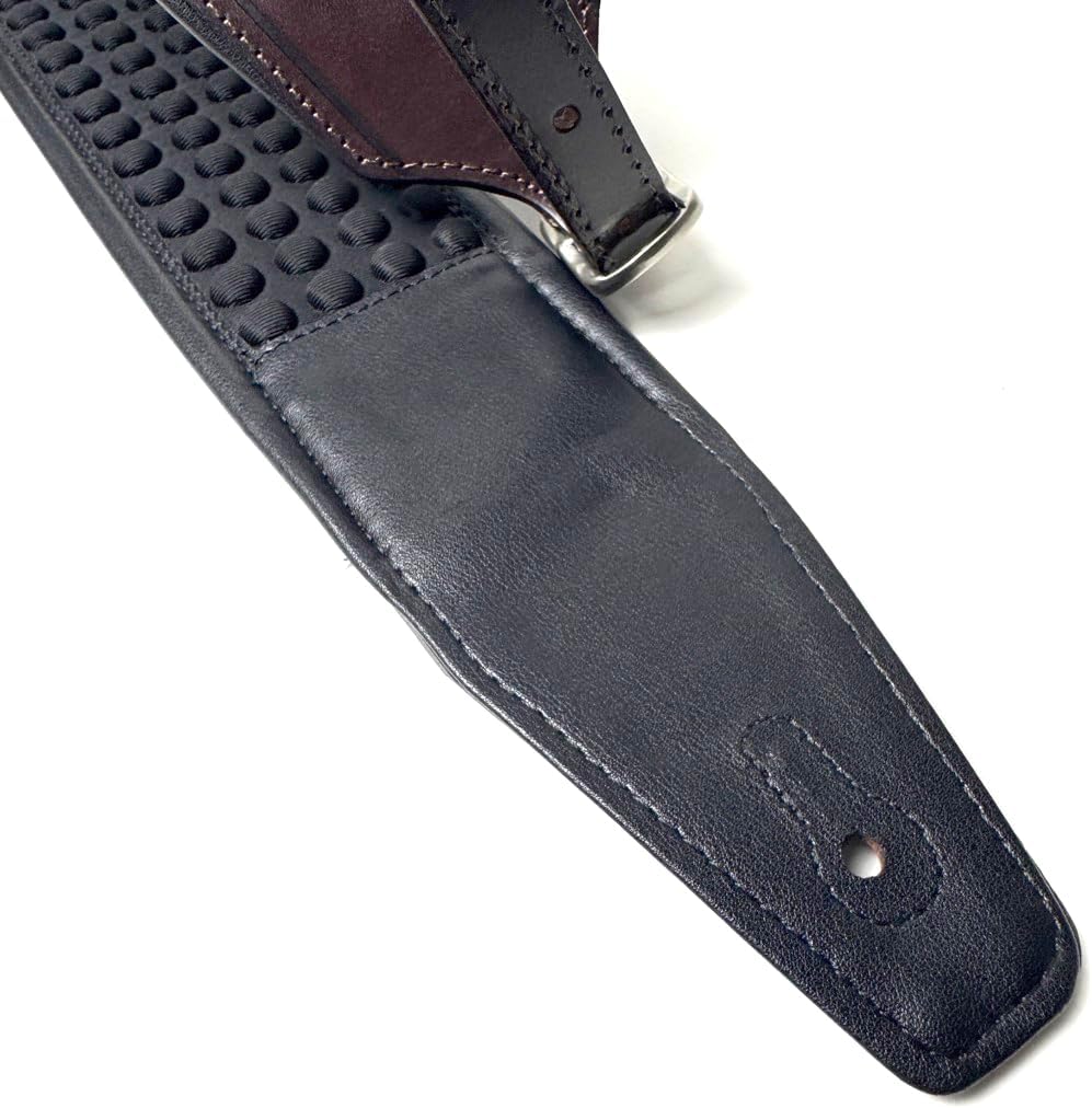 Walker And Williams FPB-43 Super Premium Full Length Grain Leather Air Cell Neoprene Backed Guitar Strap In Dark Hickory Brown Finish, Aged Nickel Buckle For Acoustic, Electric, And Bass Guitars.