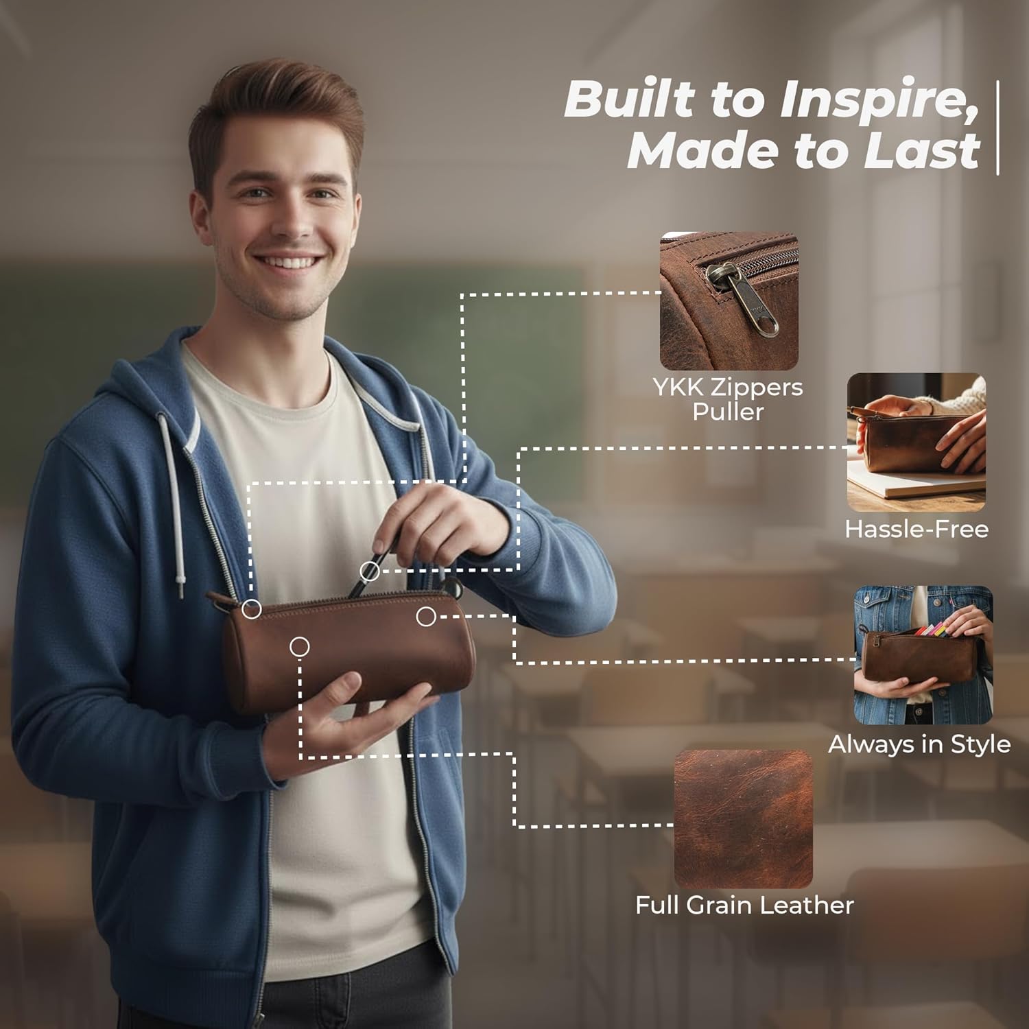| Material Type | Authentic leather with artisanal craftsmanship, Durable full-grain hide ensures long-lasting use, Eco-friendly leather, tanned without harsh chemicals, Flexible leather design keeps pouch slim and sleek, Handcrafted from genuine distressed leather, Natural leather that develops rich patina over time, Premium full-grain buffalo leather, Scratch-resistant leather improves with age, Smooth leather surface with rustic finish, Soft yet sturdy buffalo leather construction |