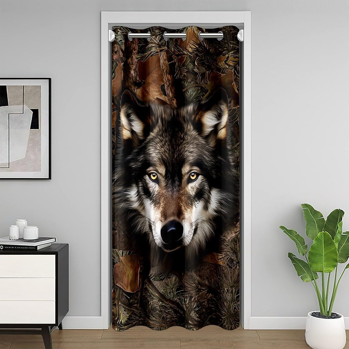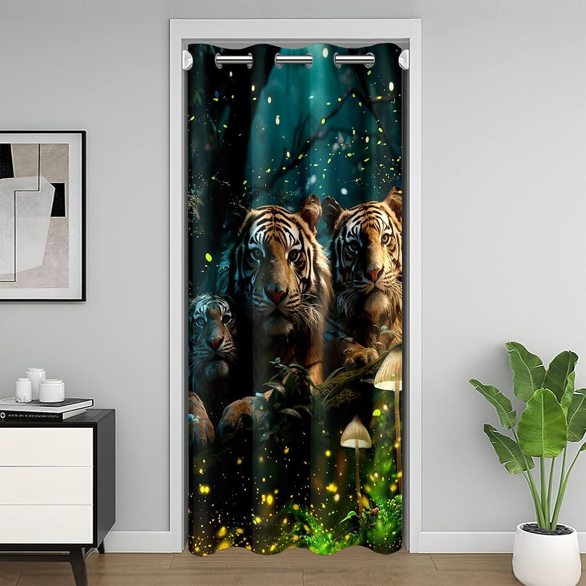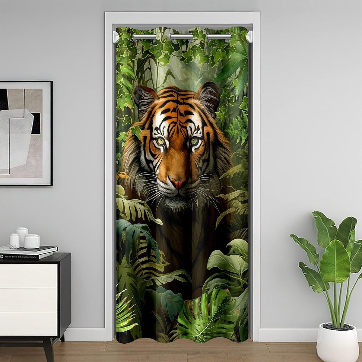 Watercolor Lion Door Curtain Brown Wild Jungle Animals Sunshine Decor Doorway Curtain Privacy for Kids Teens Adults Autumn Leaves Retro Plants Rustic Door Drape for Bedroom Closet Door 34" W X 80" L