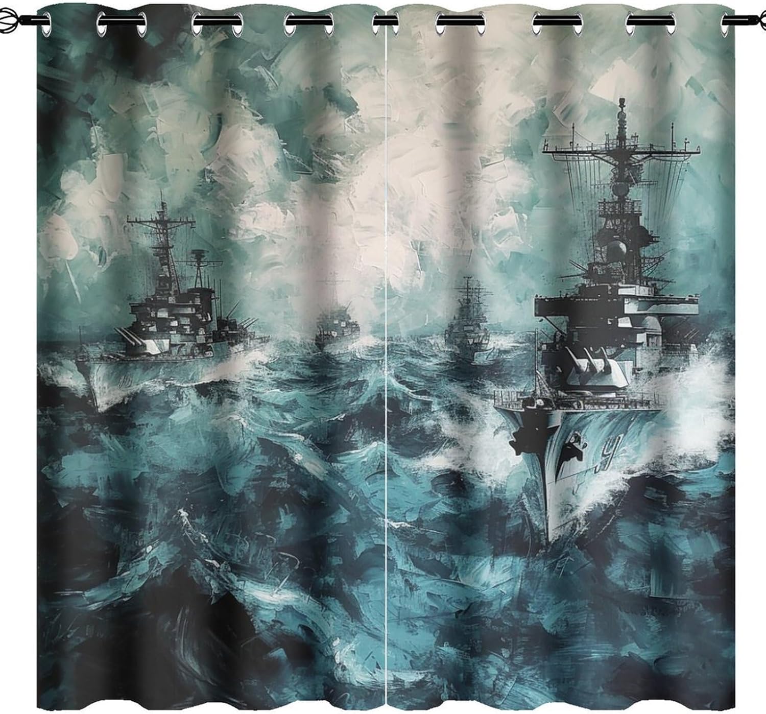✿✿:brebasf Watercolor Nautical Navy Battleship Creative Eyelet Curtains enhance the look and function of your windows. These blackout insulated window treatments are designed to provide maximum privacy and light control while enhancing the overall aesthetic of any room.✿✿ Size Description:◈ 2 panels per package,each panel measures 21x45in(53.5x114cm),total size:42x45in(107x114cm)◈ 2 panels per package,each panel measures 21x54in(53.5x137cm),total size:42x54in(107x137cm)◈ 2 panels per package,each panel measures 21x63in(53.5x160cm),total size:42x63in(107x160cm)◈ 2 panels per package,each panel measures 27.5x63in(70x160cm),total size:55x63in(140x160cm)◈ 2 panels per package,each panel measures 31.5x63in(80x160cm),total size:63x63in(160x160cm)◈ 2 panels per package,each panel measures 31.5x72in(80x183cm),total size:63x72in(160x183cm)◈ 2 panels per package,each panel measures 36x63in(91.5x160cm),total size:72x63in(183x160cm)◈ 2 panels per package,each panel measures 42x84in(107x214cm),total size:84x84in(214x214cm)✿✿:Ideal for bedrooms, living rooms, kitchens, or any space that needs a little extra glamor, these curtains offer a versatile solution for all of your window treatments needs. The perforated design allows just the right amount of natural light to pass through the curtains while maintaining privacy and creating a cozy and welcoming atmosphere.✿✿:Perforated curtains can enhance the ambiance of your home. Experience a combination of practicality, style, and versatility with these blackout thermal curtains. Enjoy the added benefits of temperature control and privacy. Upgrade your window treatments in time for Halloween, Christmas, Thanksgiving Father's Day and Mother's Day and enjoy the benefits of these perforated blackout window treatments.