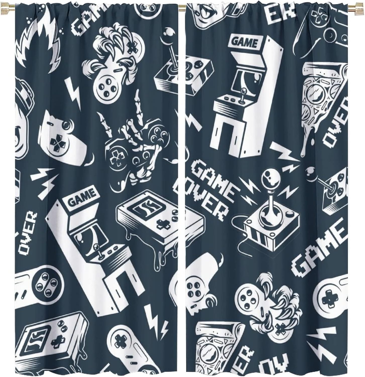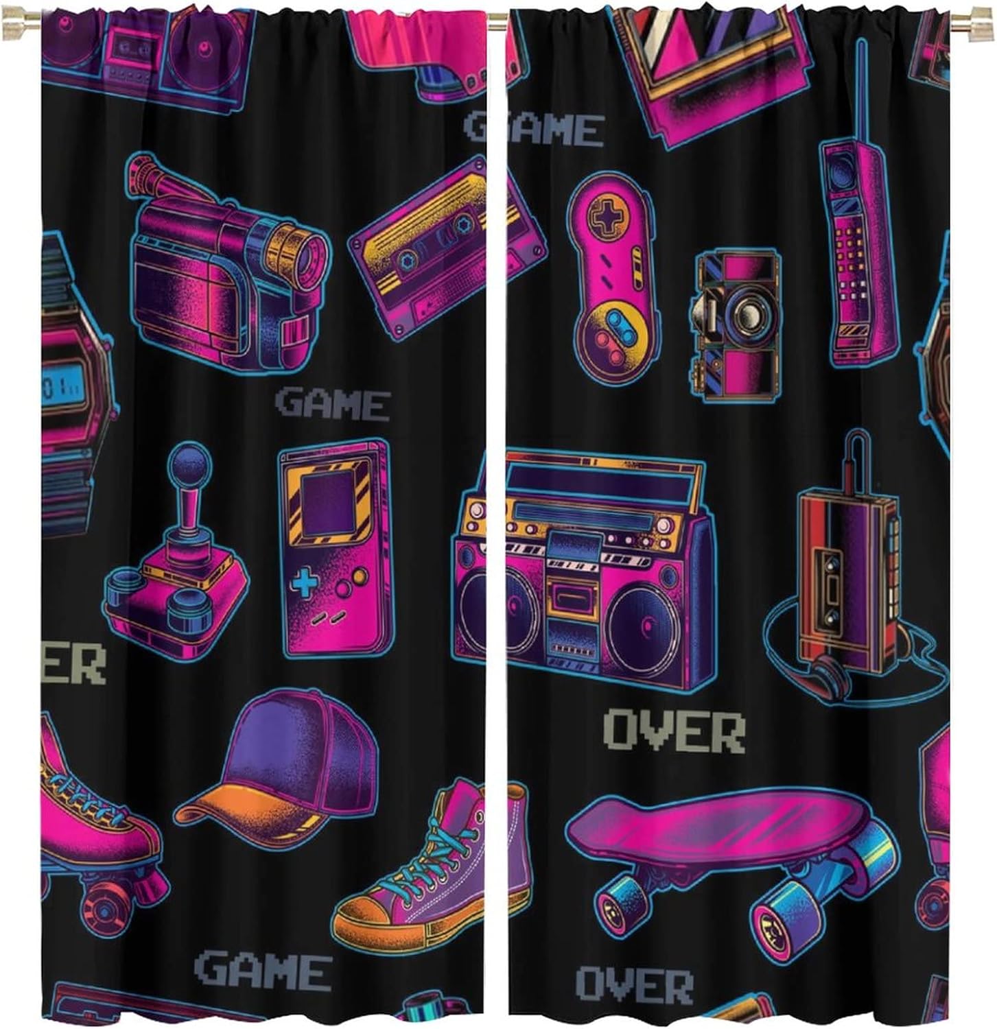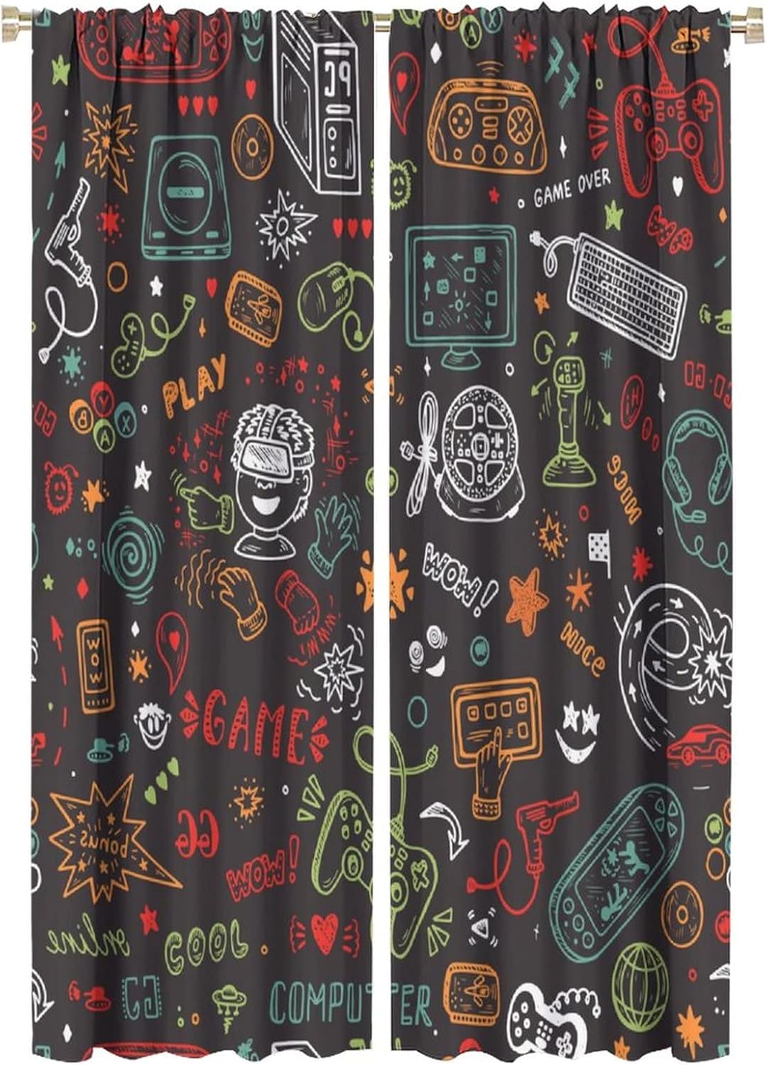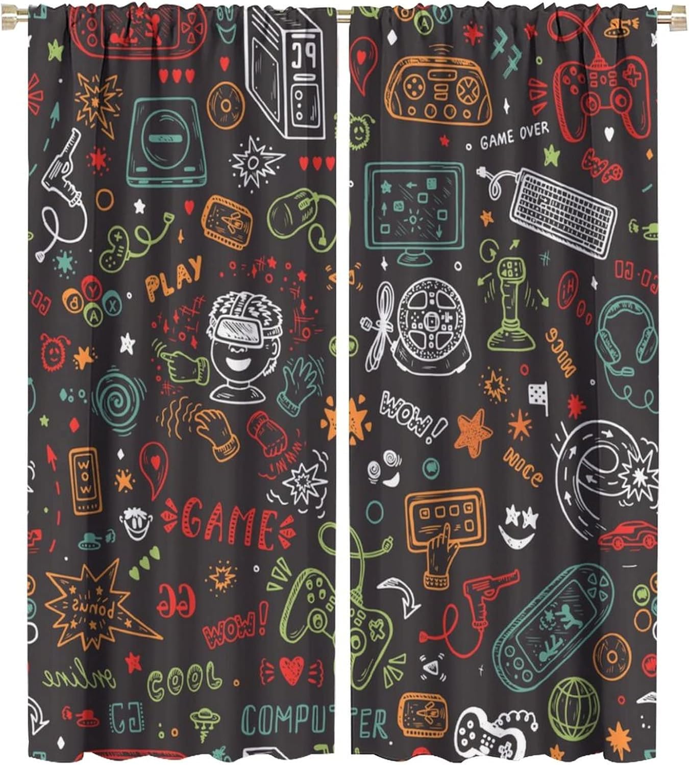 This Watercolor Video Games Curtains can block out 85%-99% sunlight and UV ray ( Darker colors work better), perfect for late sleepers and afternoon naps. Our energy saving curtains insulate against summer heat and winter chill to balance your room temperature, reduce outside noise .This Watercolor Video Games Curtains liven up your indoor or outdoor spaces with a sense of airiness and beauty.These Watercolor Video Games Curtains are suitable for the bedroom, living room, dining room, infant room, kids room, office or other public place.Material:Polyester high quality fabric curtains, warm and interesting, beautifully designed.Kindly Remind:- Don't use sharp things scratching curtains.- For proper fullness panels should slightly larger than the window size the width of your window.- 24 Hours customer support.- As different computers display colors differently, the color of the actual item may vary slightly from the above images.