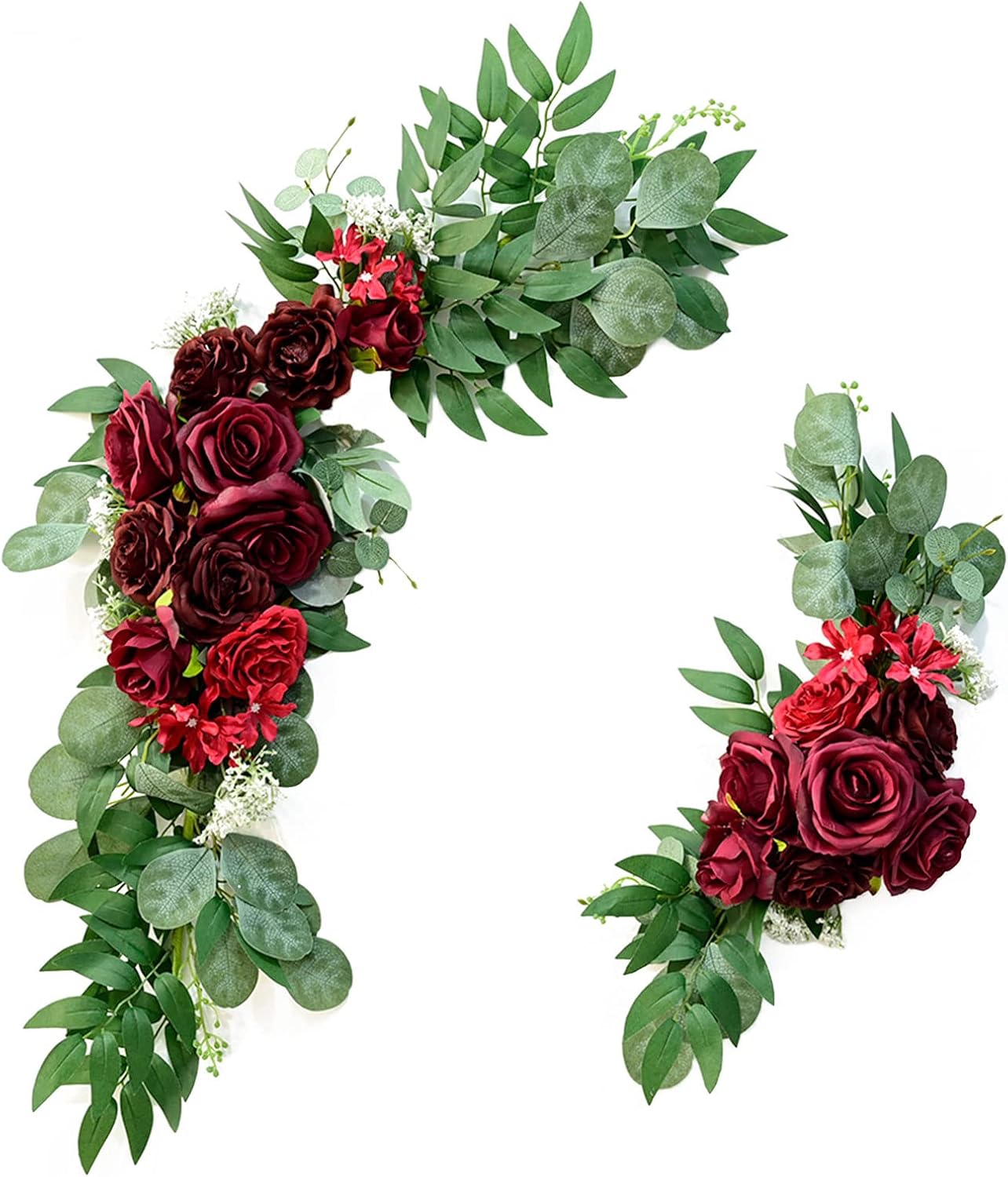 Features:- Simple elegant and comfortable color, Vivid natural form, giving people artistic romantic feelings.- The wreath swag helps to add a touch of color and the feel of nature to your wedding for timeless appeal.- These wedding flowers not only bear witness to your sweet wedding, but also continue to bear witness to your happy life.SpecificationMaterial:Silk Cloth, Plastic, Rattan CircleColor:Wine Red, PinkSize:L: 45x75 cm/ 17.7x29.5 inch;S: 25x50 cm/9.8x19.7 inch;Package Including:2 Pcs x Wedding Arch Flowers KitWarm note:1.Manual measuring, please allow 1 ~ 3mm error,thank you.2.Due to the difference between different monitors, the picture may not reflect the actual color of the item.We guarantee the style is the same as shown in the picture.