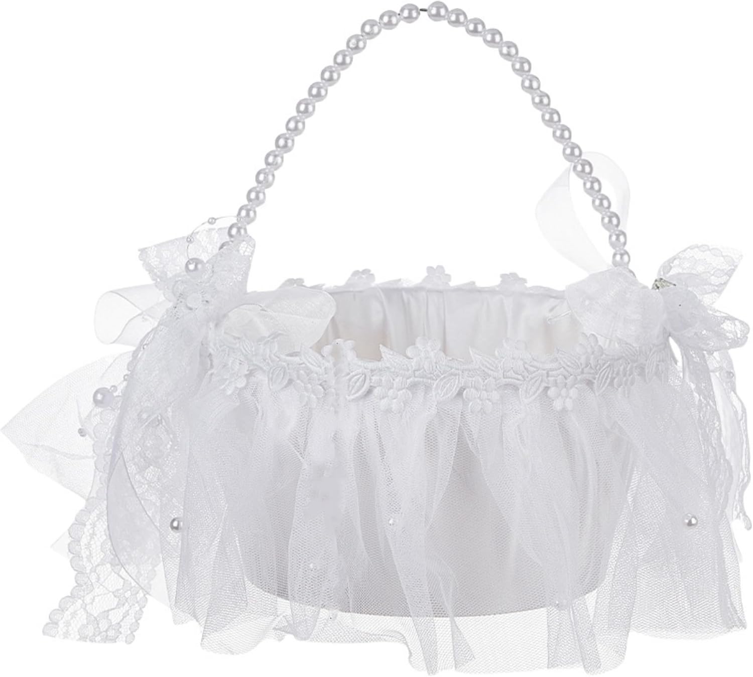Elevate the enchantment of your wedding ceremony with this exquisite flower girl basket. Crafted with meticulous attention to detail, this satin basket boasts a lustrous pearl handle that adds a touch of elegance and sophistication. Perfect for holding delicate petals or adorning with ribbons and lace, it creates a cherished keepsake for your special day. Designed to store and display flowers with grace, this versatile basket can also be repurposed as a stylish home decor piece. With its timeless beauty and practicality, it promises to be a treasured possession for years to come. Embrace the magic of love and embark on a new chapter with this captivating flower girl basket.